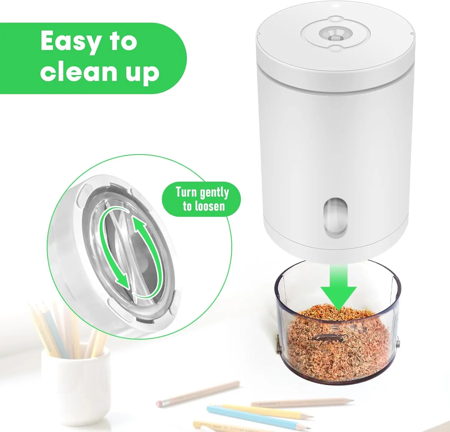 Fully Automatic Electric Pencil Sharpener,Rechargeable Pencil Sharpener.Suitable for No. 2/Colored Pencils (6-8 mm),Applicable to School/Classroom/Office/(White)