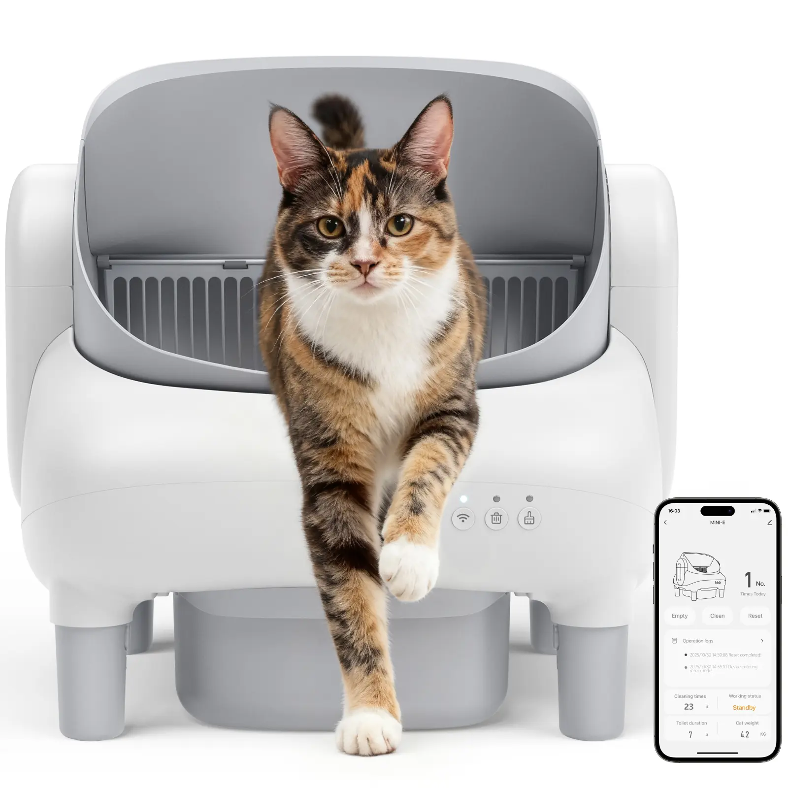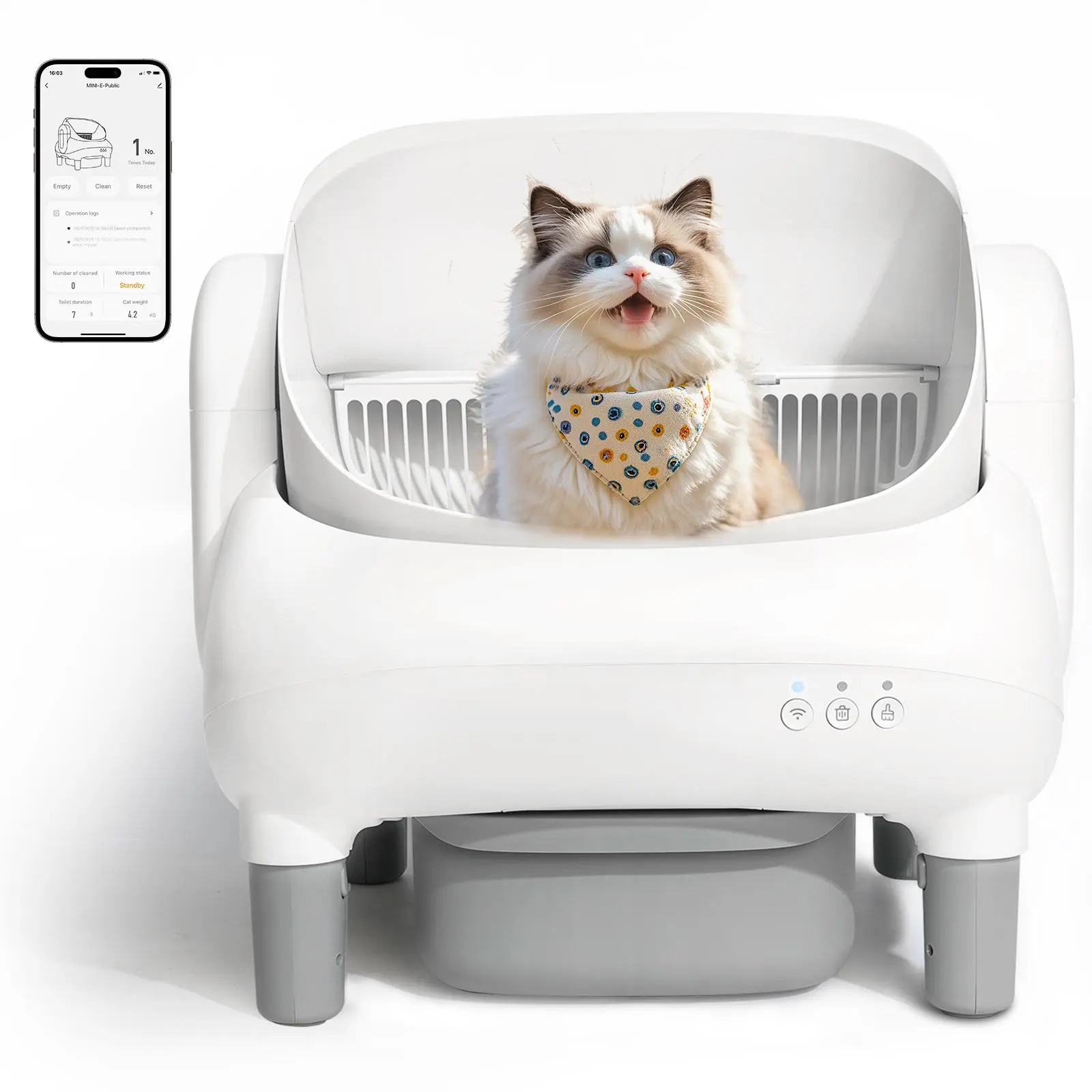 Smart APP Control- Remote Management: Activate auto-cleaning, schedule waste disposal, and track litter usage trends- Instant Alerts: Receive alerts for full bins- WiFi Compatibility: 2.4G WiFi for stable connectivity