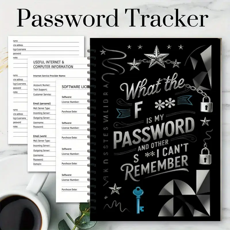 Fun Password Notebook with Generator Pages, Women's Code Diary, Tech Gift for Office & Home, Spiral Bound Password Manager, Travel Diary Notebook