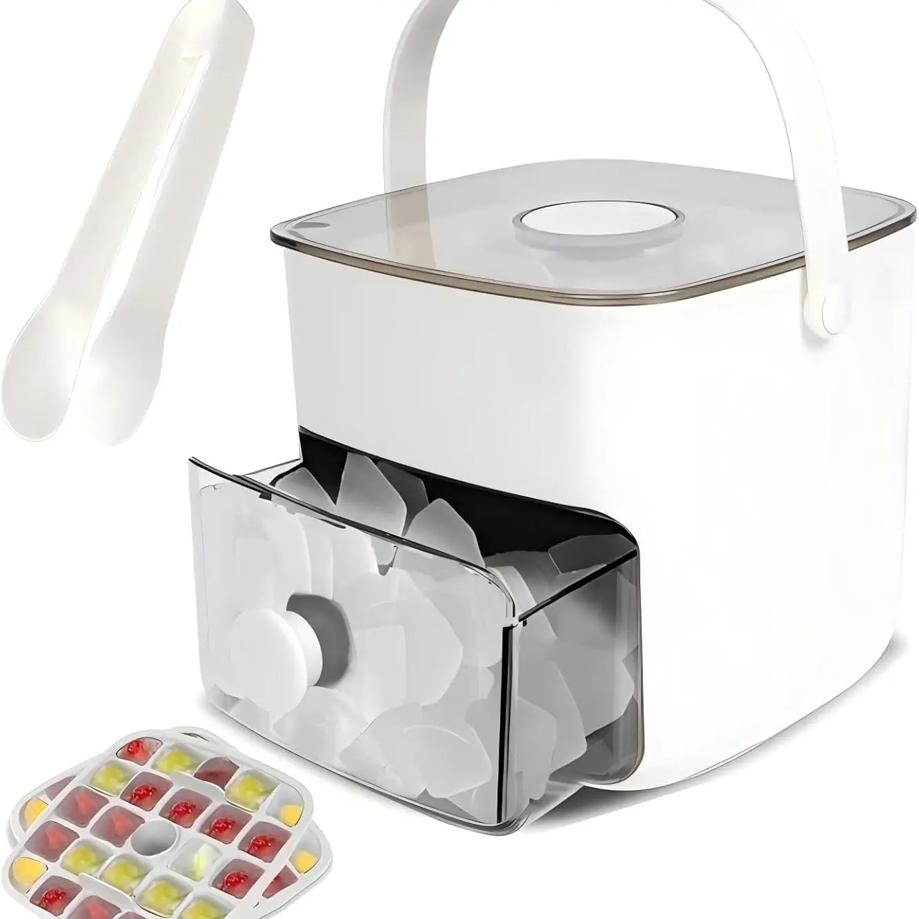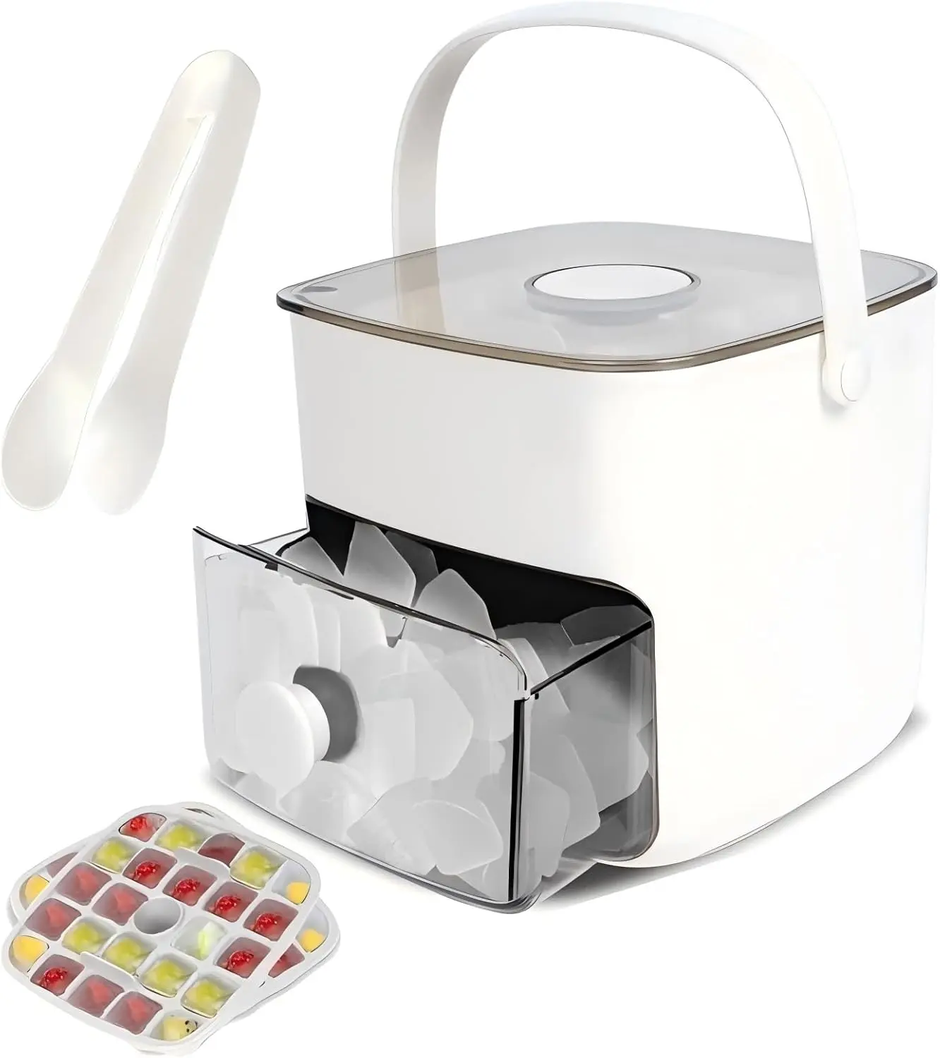 48 Cube Ice Maker with Easy Press Lid - Double-deckportable design includes silicone trays, durable plasticconstruction for DIY frozen food and beverages, ideal forsummer beverages, Countertop Ice Maker, BeverageCooling, Modern Kitchen Gadgets
