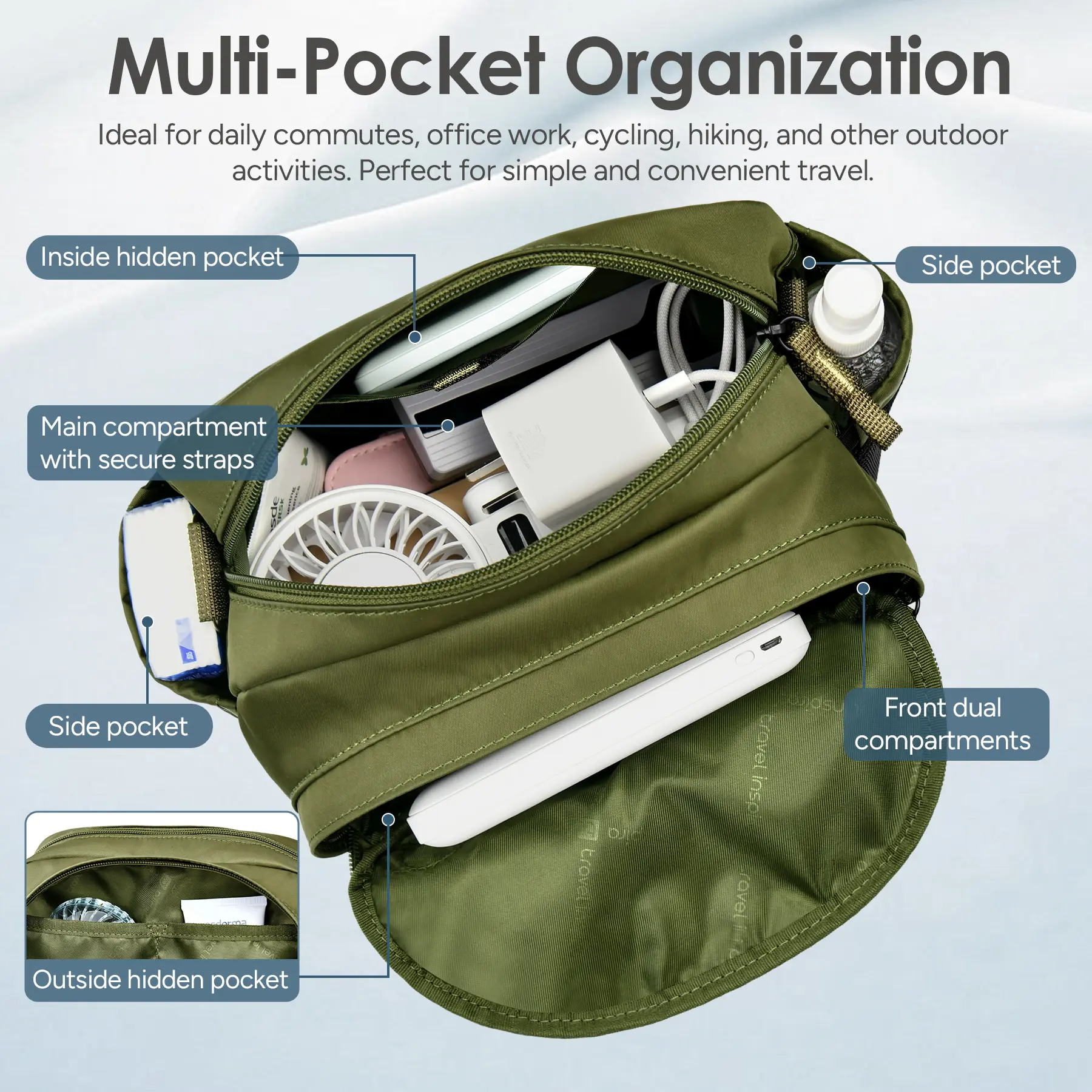 travel inspira Functional Multi Pocket Crossbody Bag Stylish Shoulder Bags Purse, Water-proof, Hiking,Outdoor,Travel,Leisuretravel inspira Functional Multi Pocket Crossbody Bag Stylish Shoulder Bags Purse, Water-proof, Hiking,Outdoor,Travel,Leisure