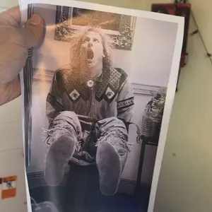 The print showed up in good condition, right size, and unbent. The really big problem is there is a purple hue around the mouth of person in the print. Would not buy ever again or recommend ANYONE buy from this seller. Bad product and they should not be able to sell on here again!