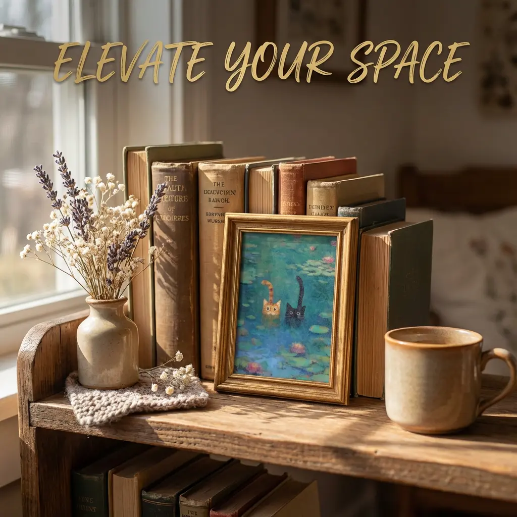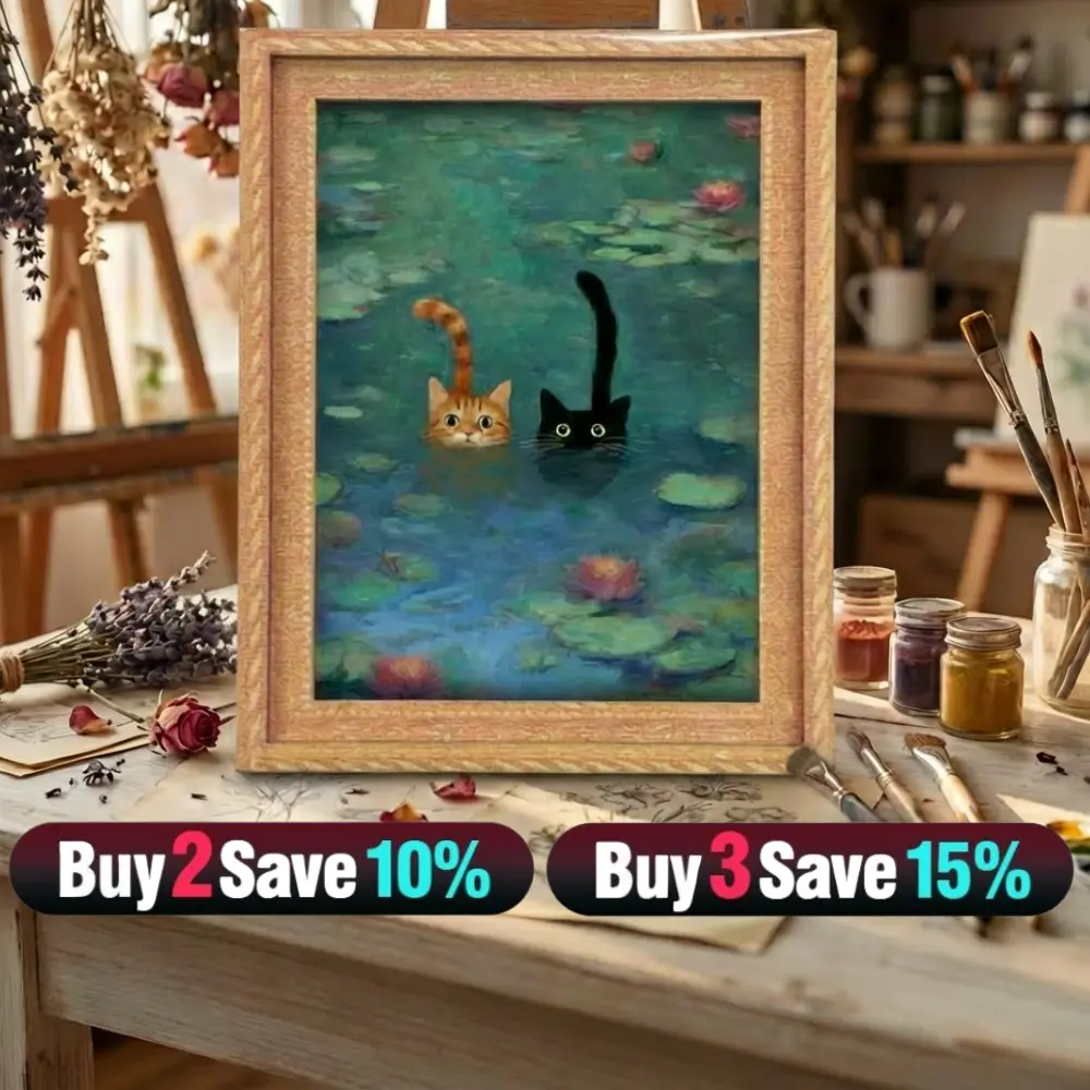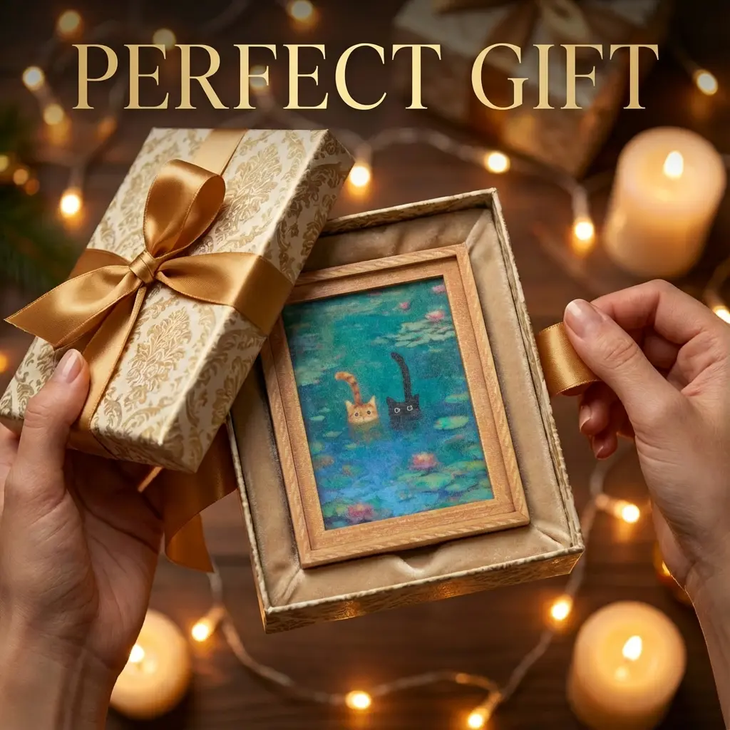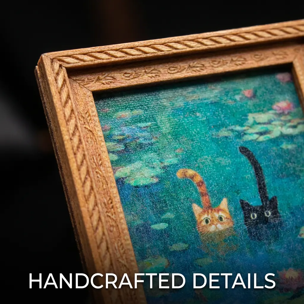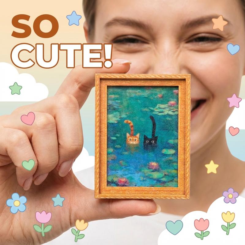·Aesthetic & Cute: Monet-inspired Cat Parody with a detailed 3D frame.