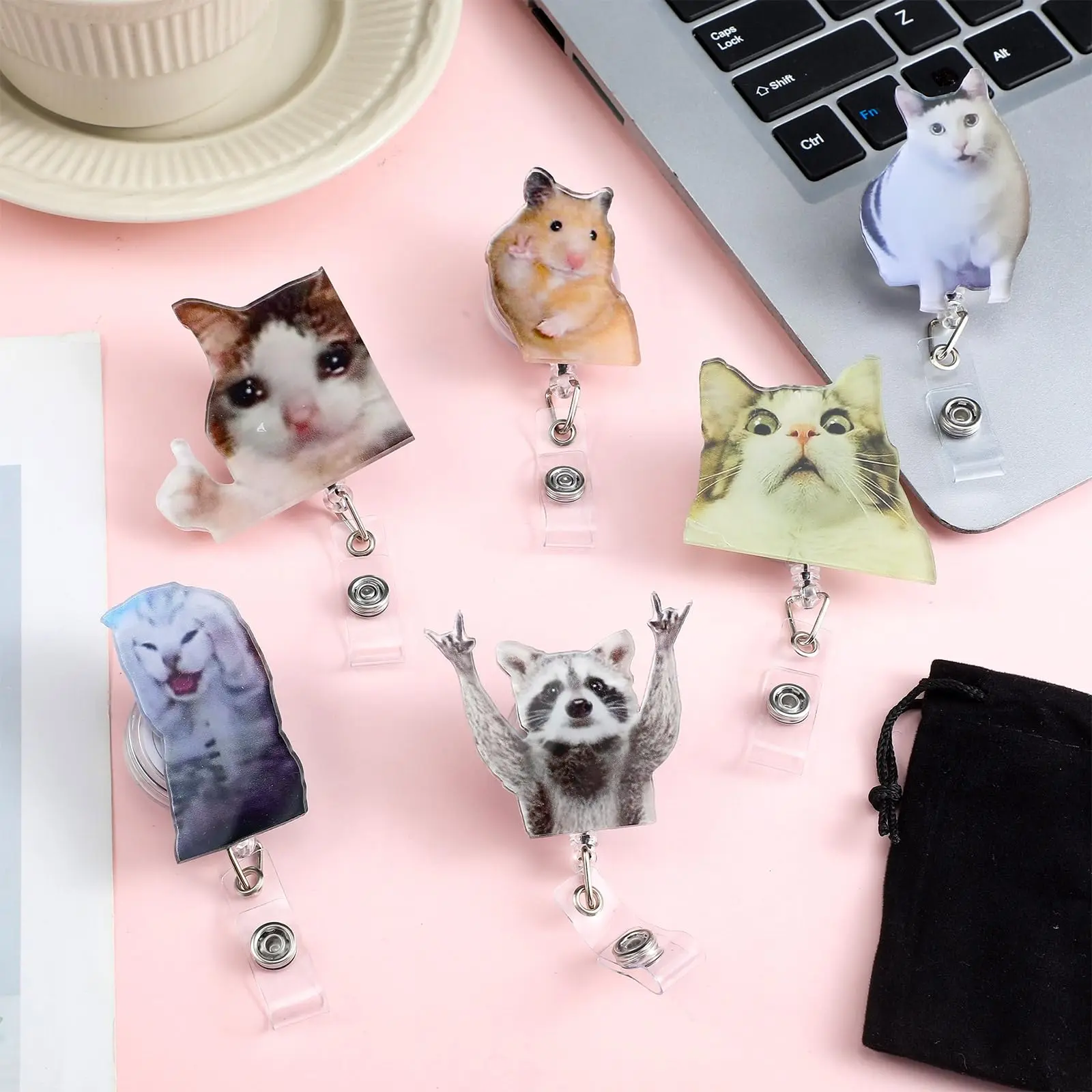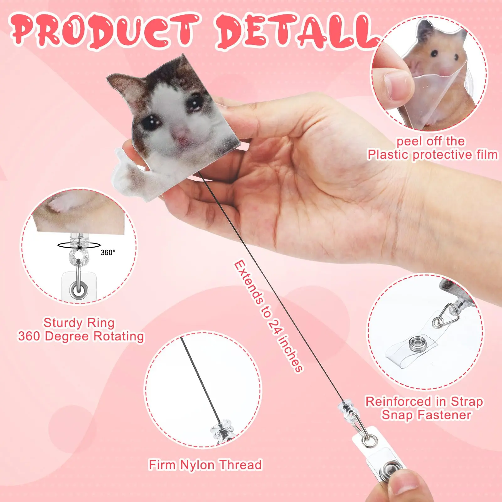 you will receive 6 interesting animal expression packs with retractable badge scrolls, including cute badge scrolls of cat meme, hamster and raccoon,If the products you received are separate, you need to tear off the protective film on the surface and then paste it