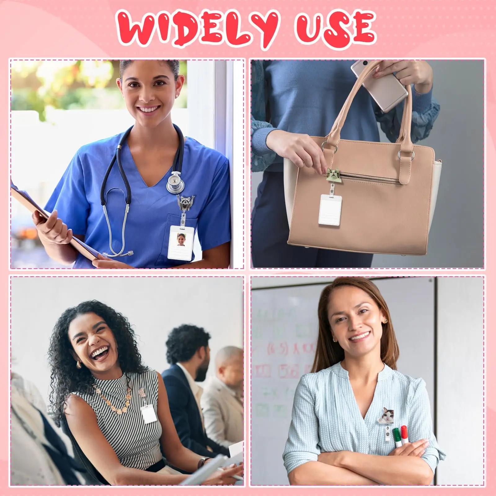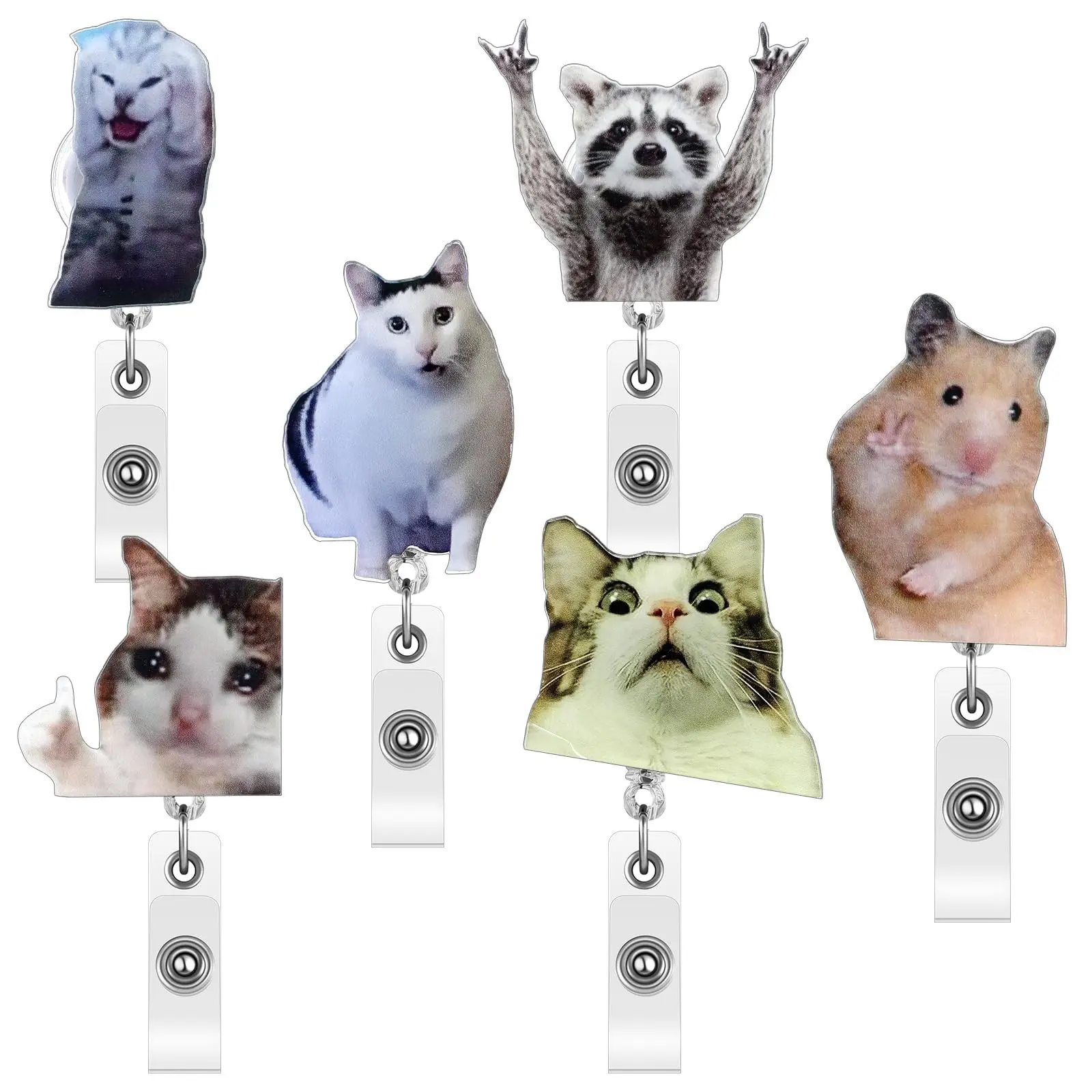 Cute Cat Badge Set 6pcs Cat meme Badge Reel Animal Pins Badge Reel Acrylic Card Holder Retractable Badge with Alligator Clip for Nurse Doctor Medical Healthcare Worker Student Office School Teacher, Expressive Mood Accessories
