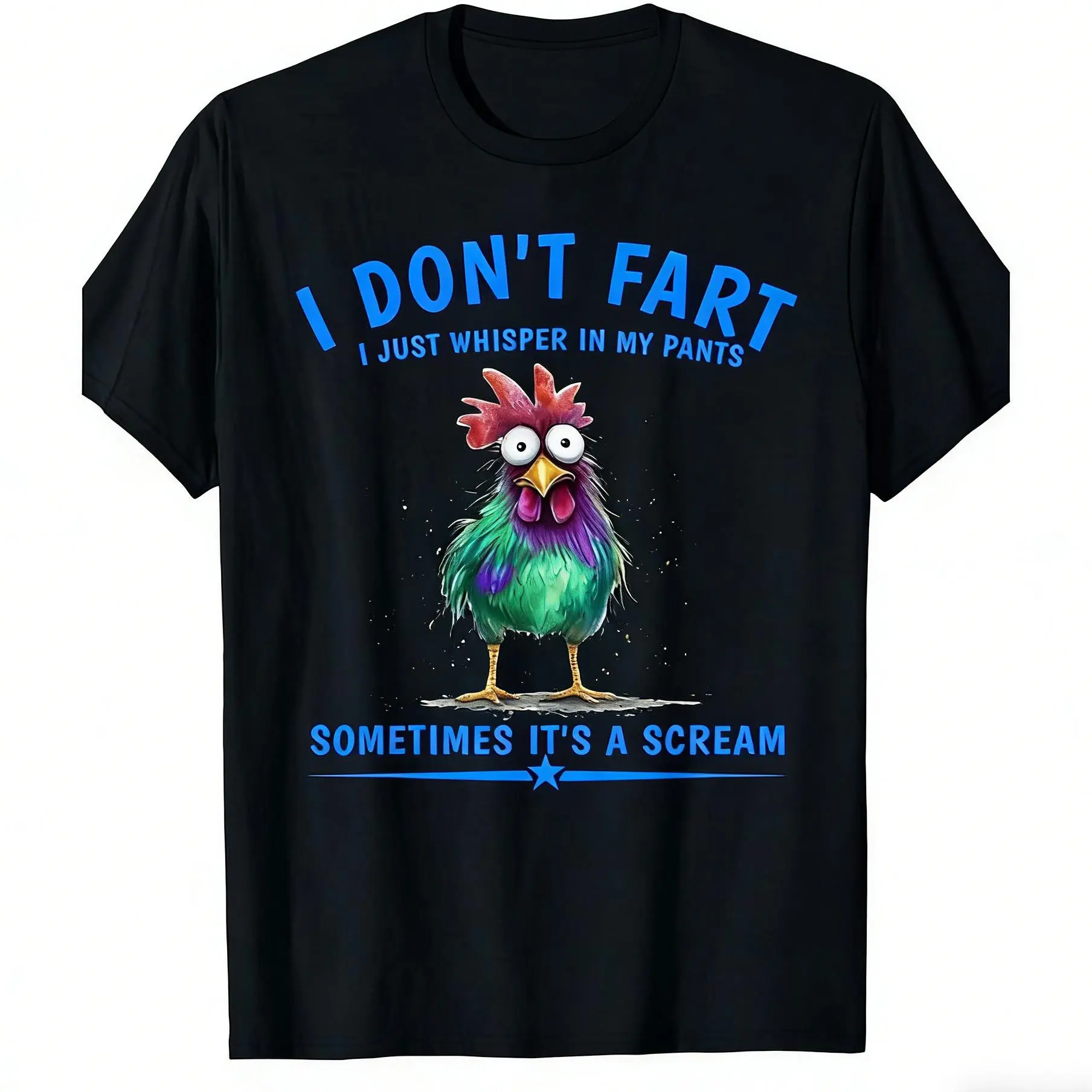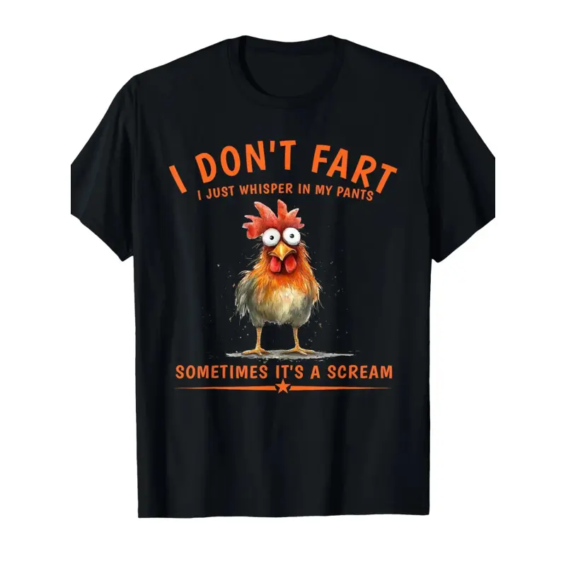 Funny "I Don't Fart I Just Whisper In My Pants" Chicken Graphic T-Shirt - Humorous Crew Neck Short Sleeve Tee for Men & Women, Casual Comfortable Unisex Top for Parties, Halloween, Casual Attire - All-Season Funny Gift Idea, Retro Y2K Streetwear