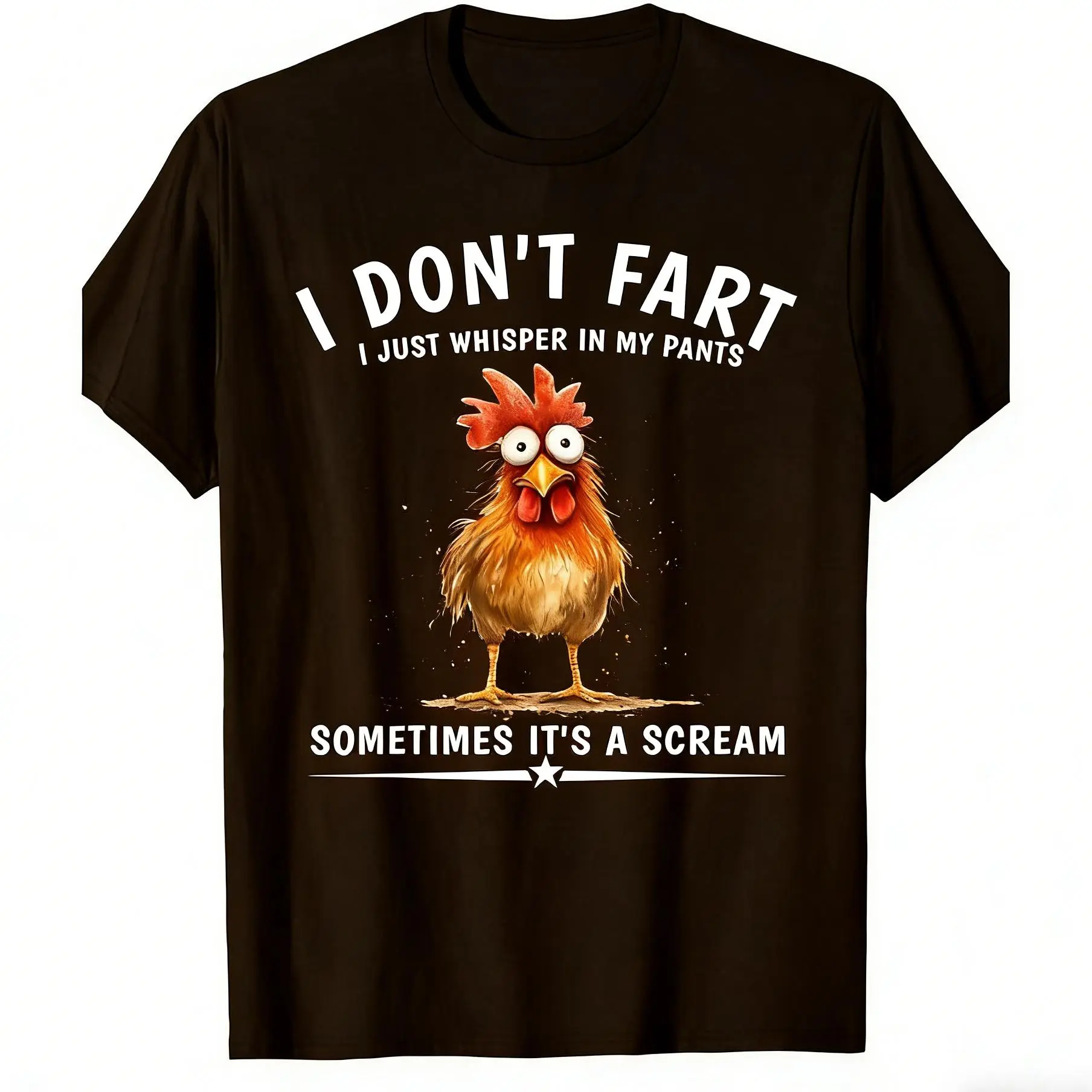 Funny "I Don't Fart I Just Whisper In My Pants" Chicken Graphic T-Shirt - Humorous Crew Neck Short Sleeve Tee for Men & Women, Casual Comfortable Unisex Top for Parties, Halloween, Casual Attire - All-Season Funny Gift Idea,  Retro   Y2K Streetwear