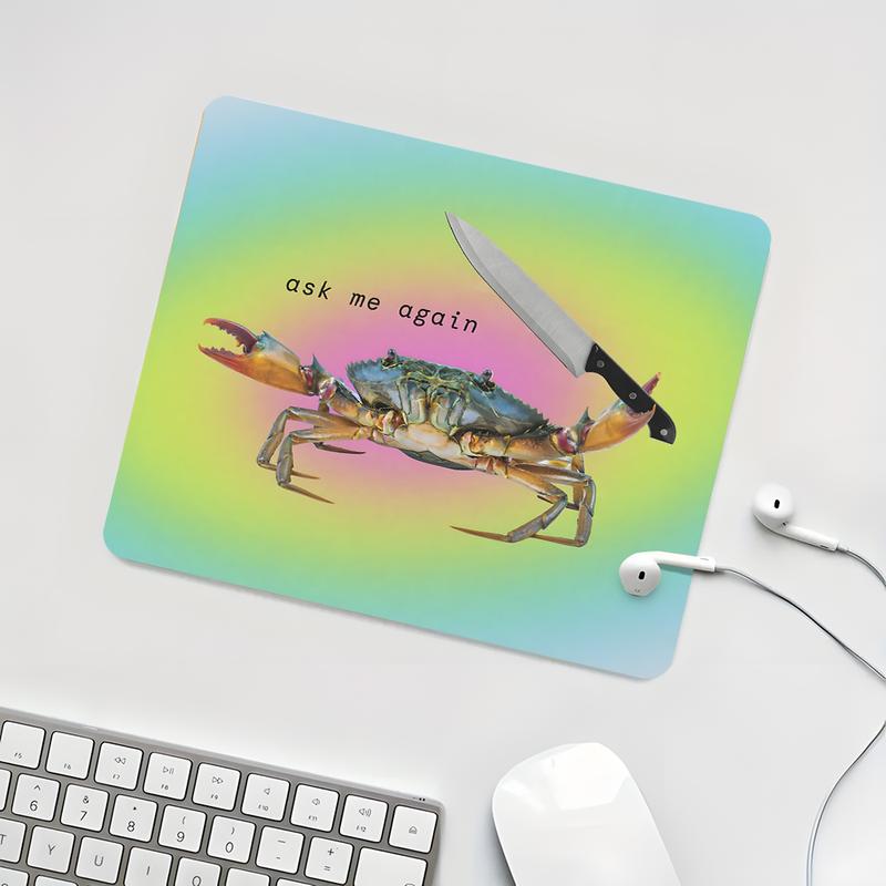 5. Funny Crab Meme Ask Me Again Design Square Gaming Mouse Pad, Desktop Decorative Protective Pad, Rubber Anti-slip Lockedge Work Pad, Small Size Suitable for Laptop, Desktop Computer Games, Work, Family