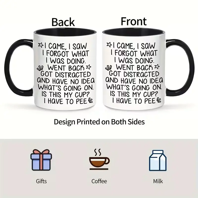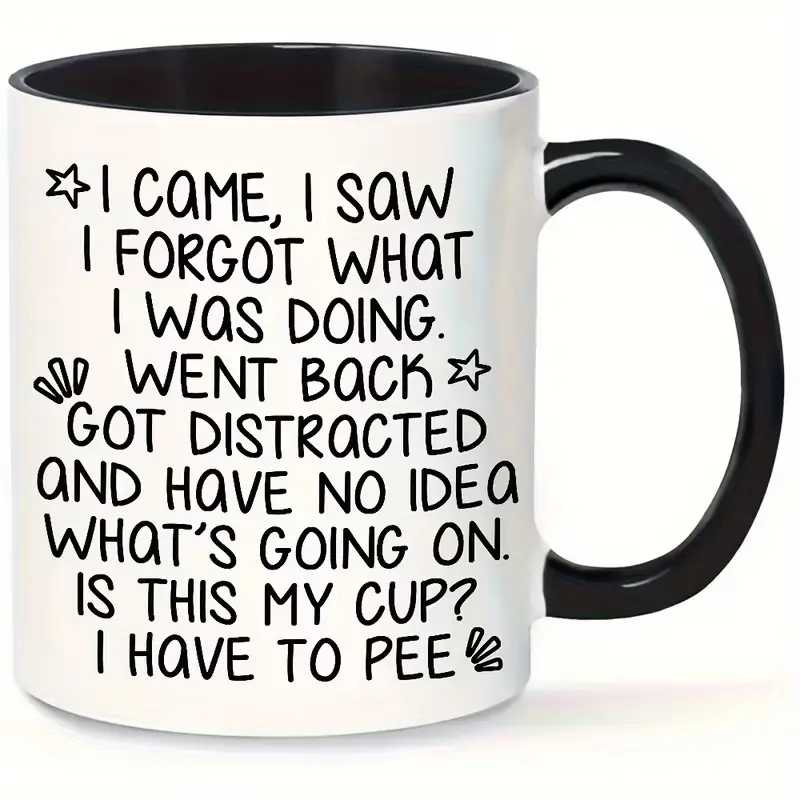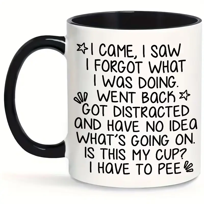1pc Funny FORGETFUL Elderly Comic Mug - Ceramic Coffee Cup with "I Came & I Saw..." Funny Face, Suitable for Hot/Cold Drinks, Gift for Seniors, Birthday or Holiday Gifts