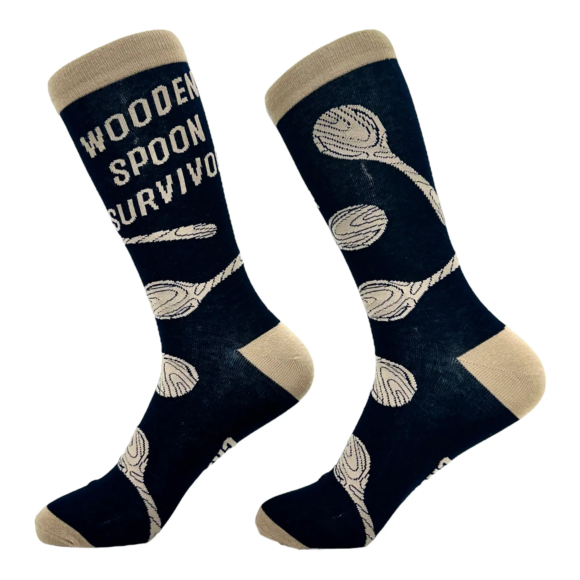 This is a Mens (9-11) Black - Wooden Spoon Soft Comfortable Funny Graphic Socks sold by Crazy Dog T-Shirts.