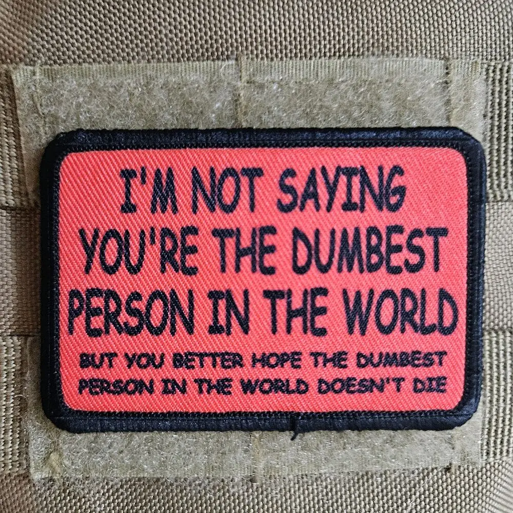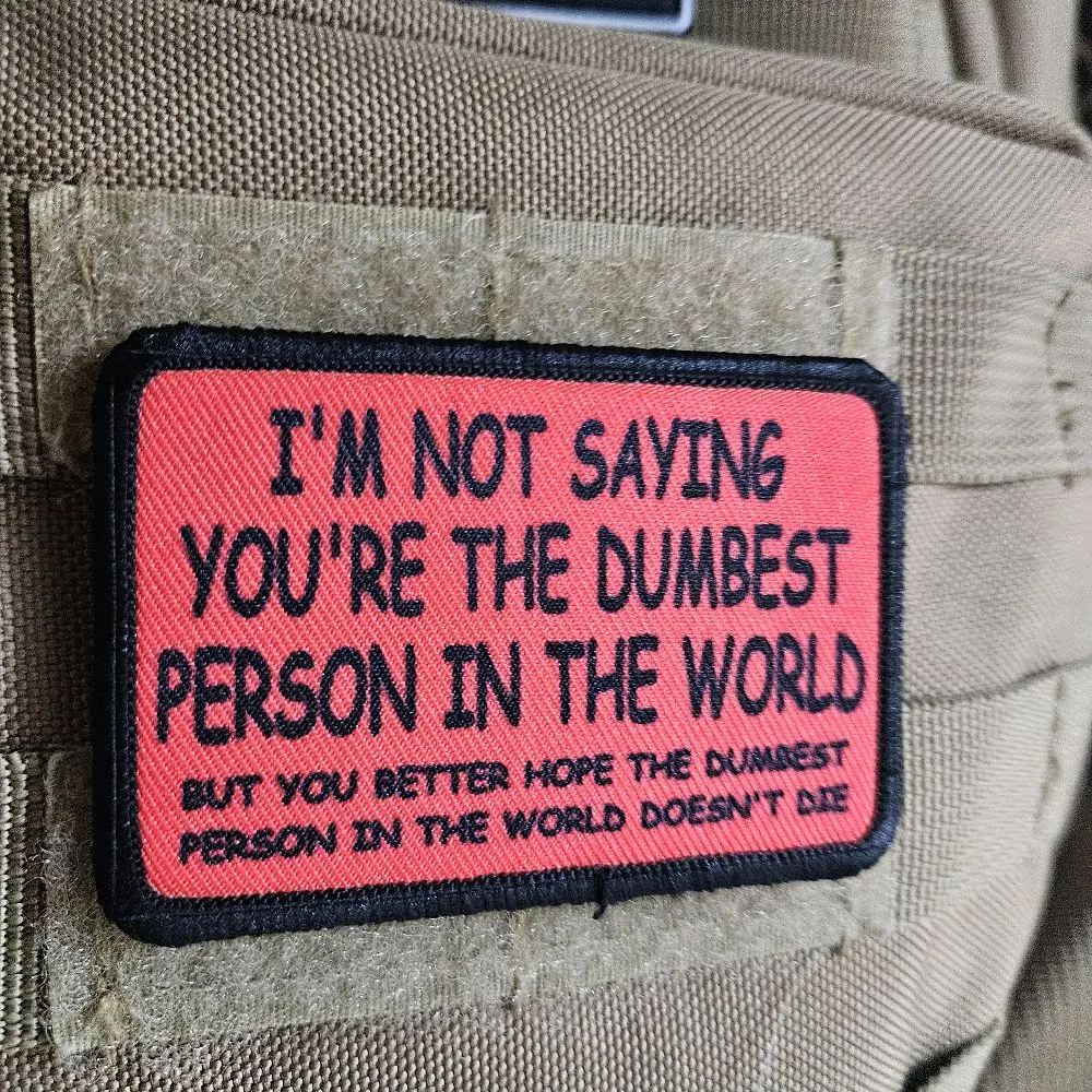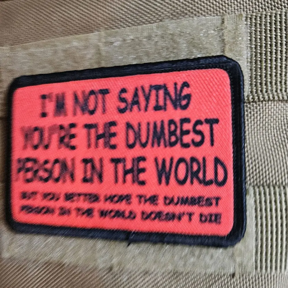 ·Design: This morale patch features a humorous message: "I'm not saying you're the dumbest person in the world, but you better hope the dumbesbut you better hope the dumbest person in the world doesn't die." 📝