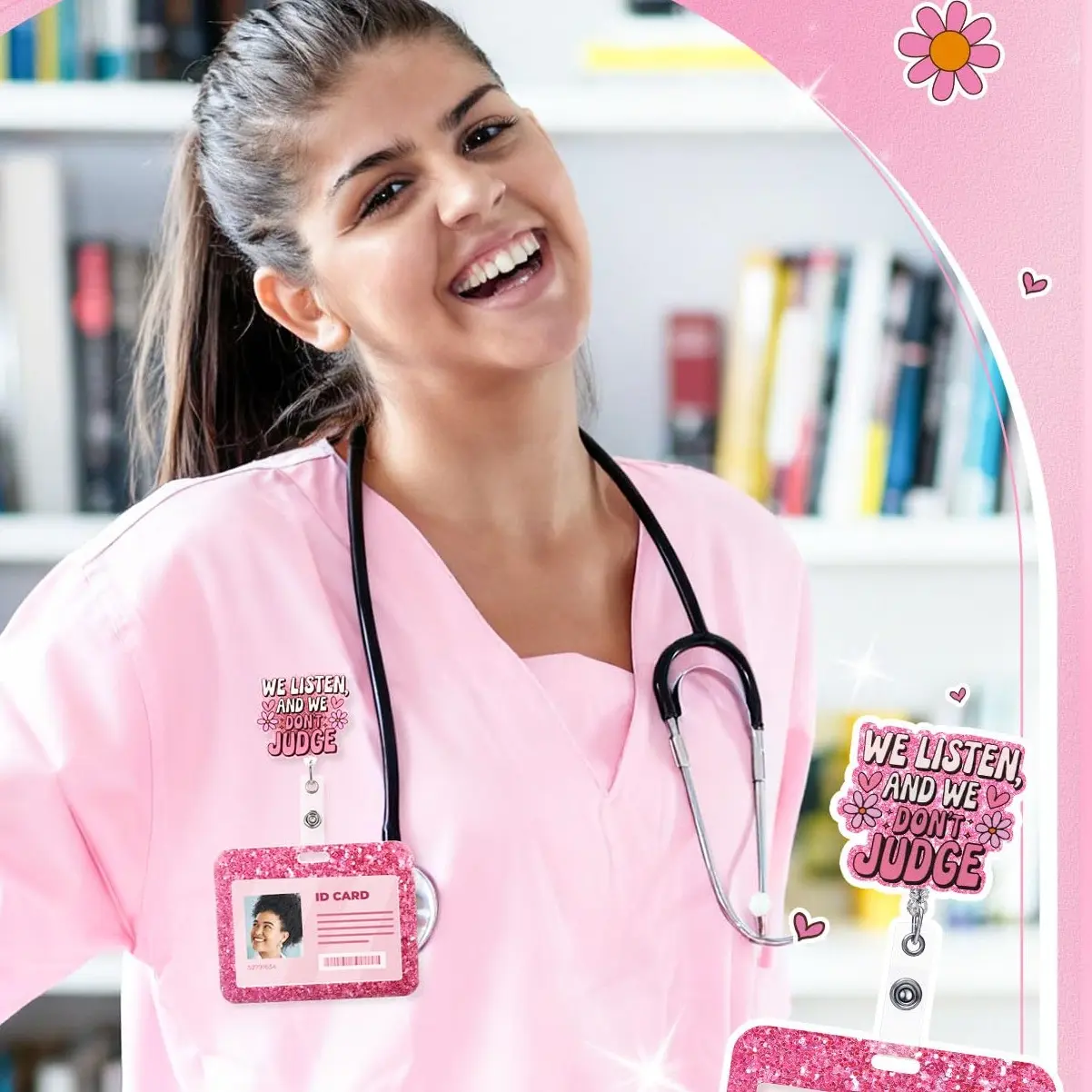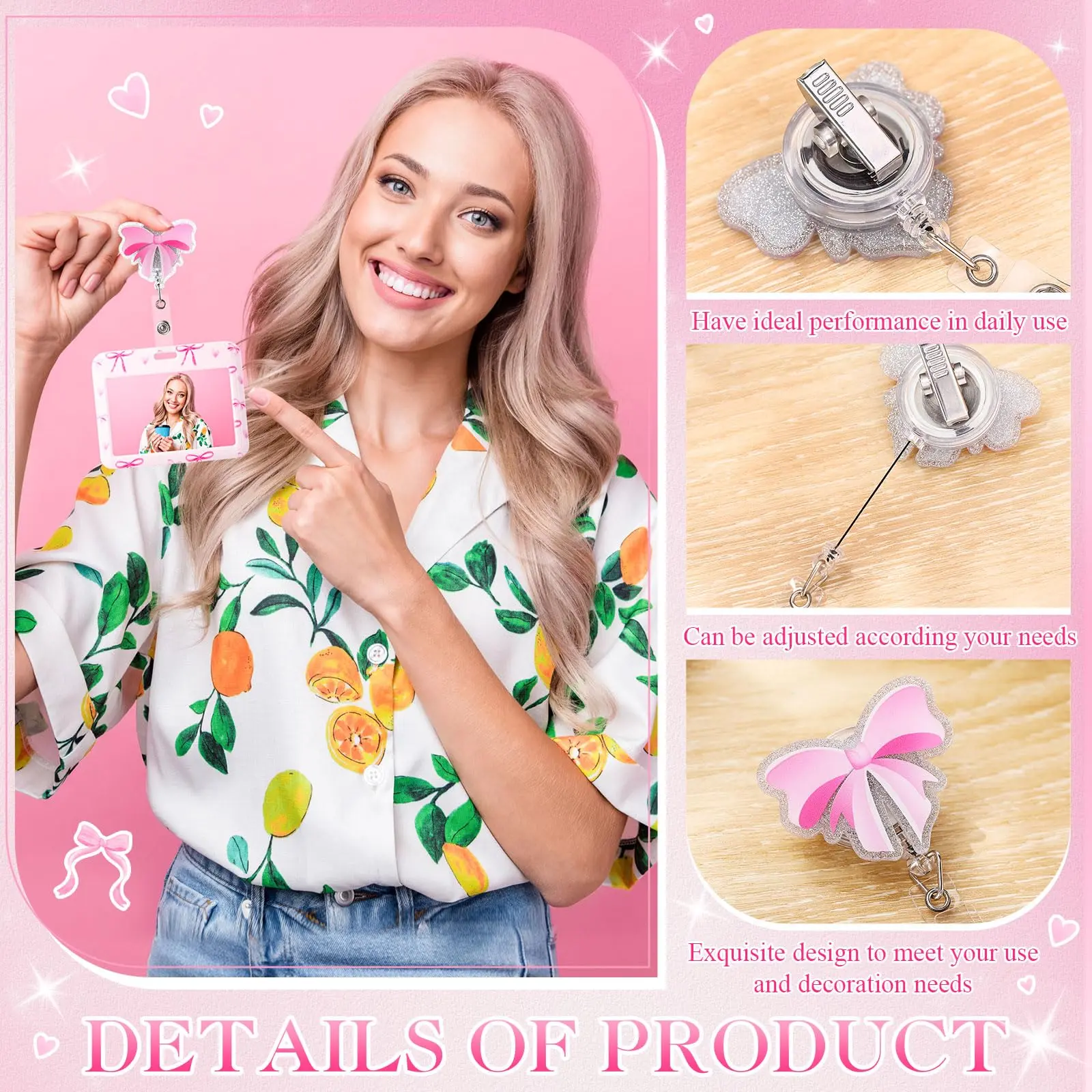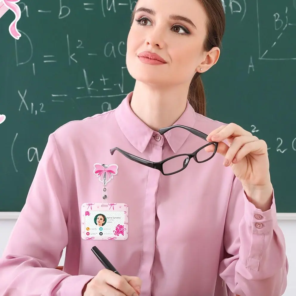 Nurse Day Gift Nurse Badge Reel Pink Bow ID Holder Retractable Badge Reel 4.72 x 3.54In Cute Nurse Badge Reel ID Card Holder with Alligator Clip for Doctor Nurse Teacher Student Office Worker Volunteer Healthcare Accessories, Easter Nurses Week Gift
