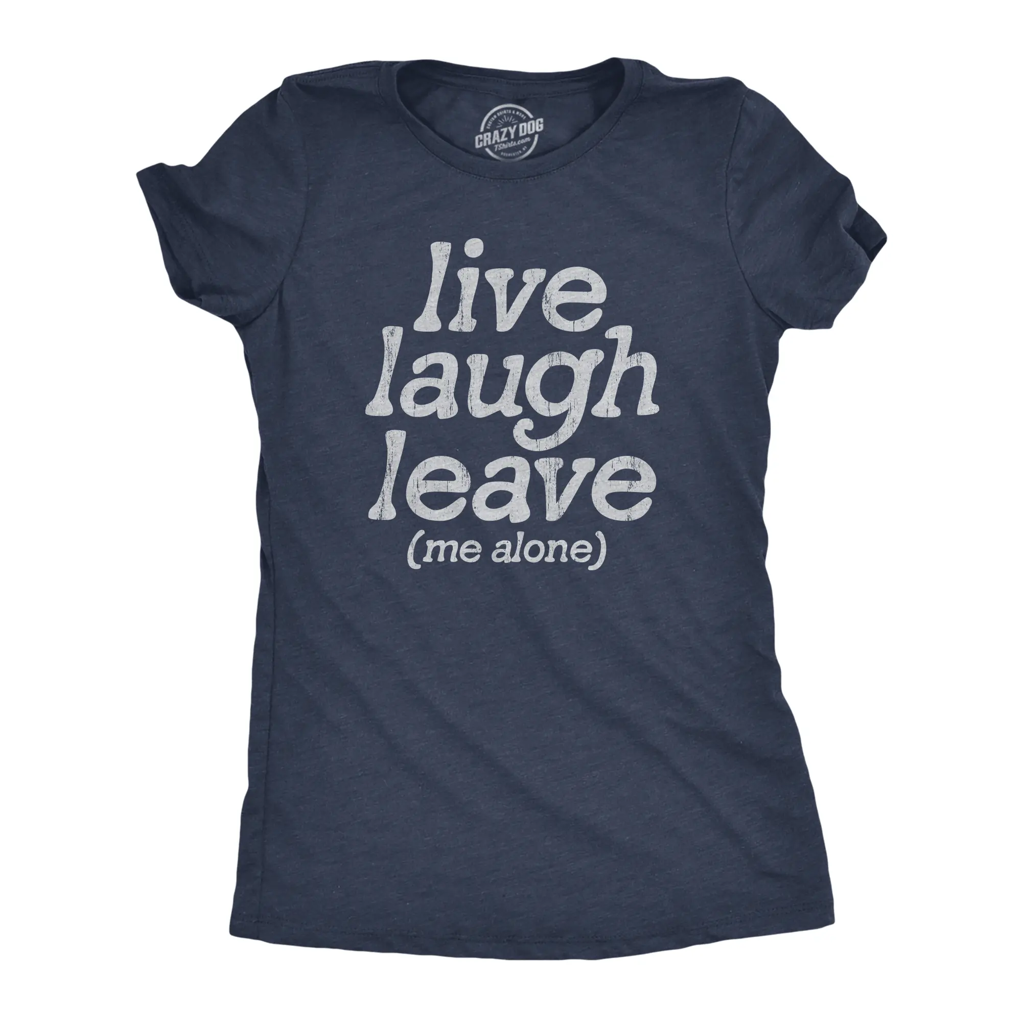 This is a Heather Navy - LEAVE Soft Comfortable Funny Womens Tee sold by Crazy Dog T-Shirts.