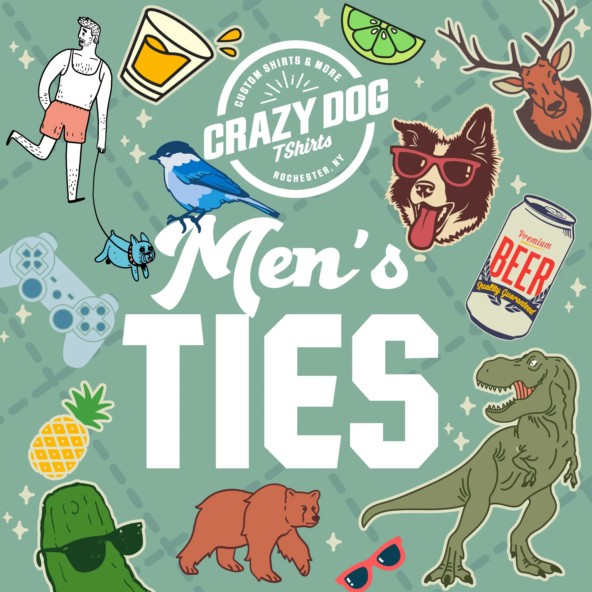 Bring some fun into your professional wardrobe! Crazy Dog’s funny neckties are the perfect choice for office happy hours, conventions, meetings, or any other semi-formal occasion where professionalism and fun meet! Our ties will help you show off your unique sense of humor and your hilarious interests, and make great gifts for Dad, Grandpa, Friends, or Groomsmen.