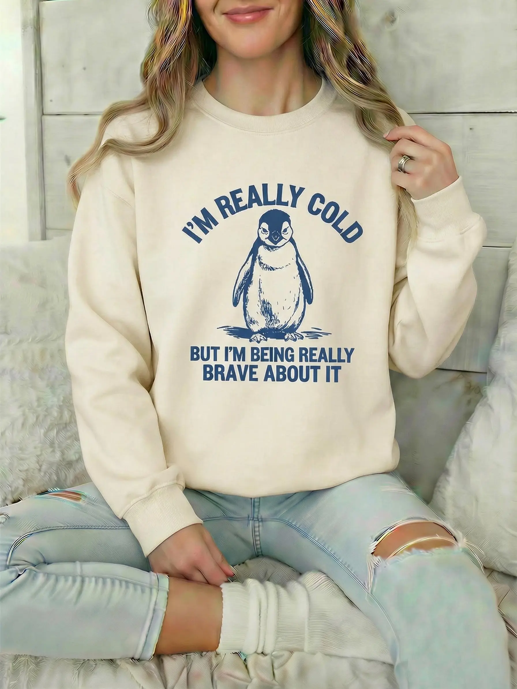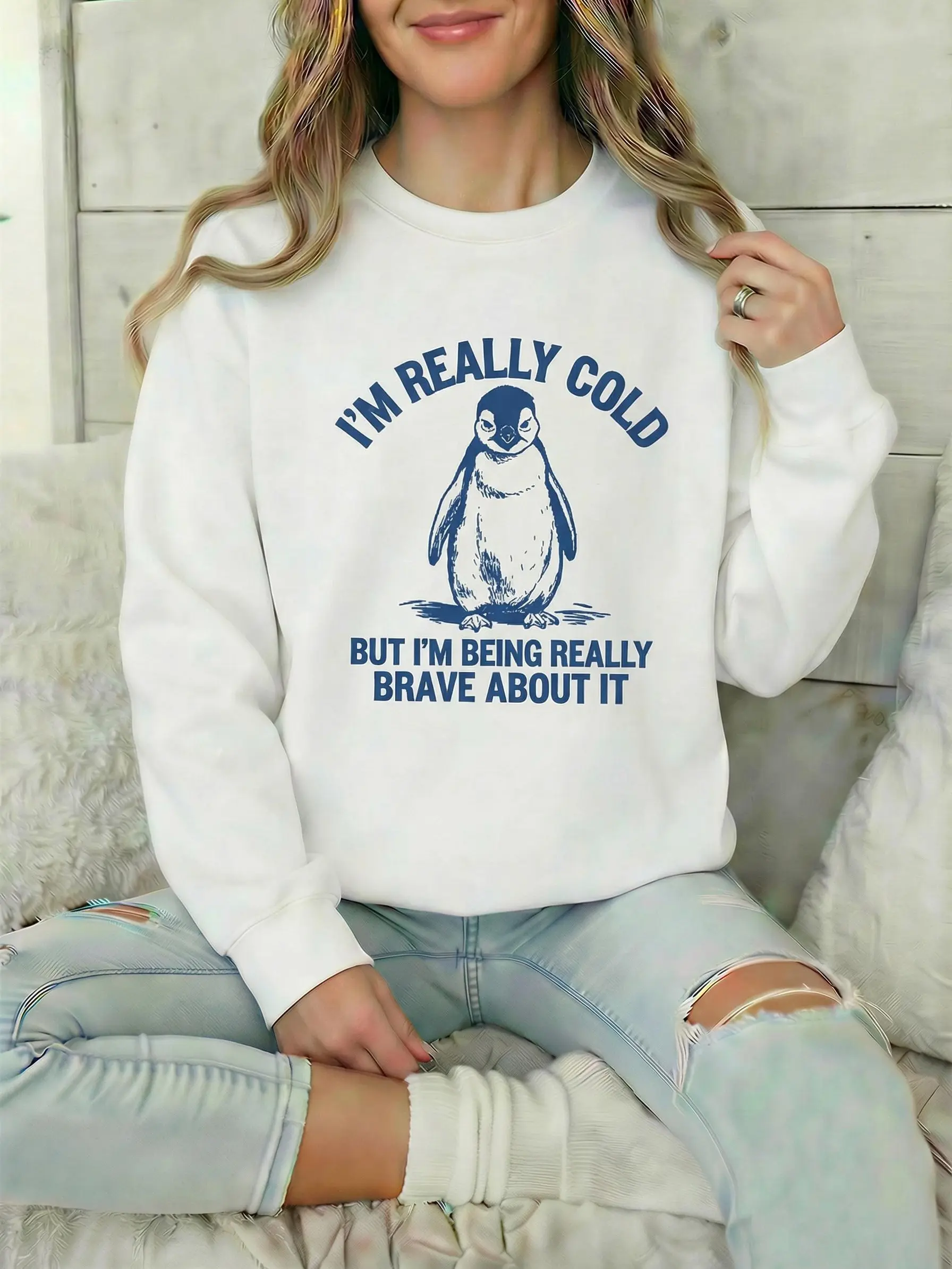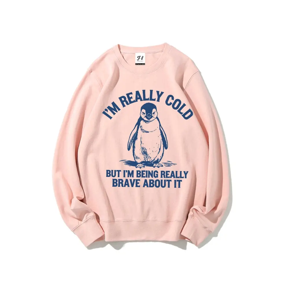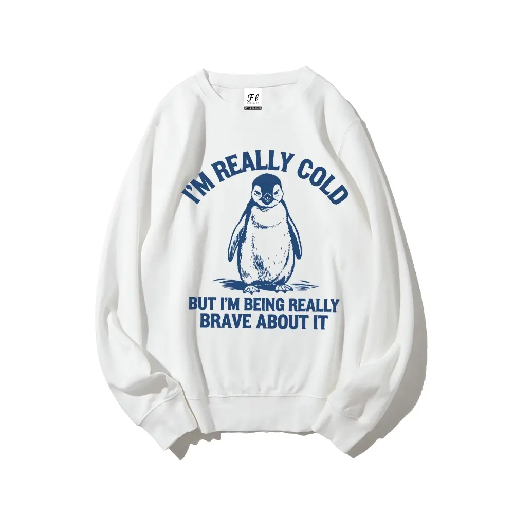 5. I'm Really Cold But I'm Being Really Brave About It Sweatshirt, Funny Penguin T-Shirt, Trendy Vintage Retro Cozy Hoodie, Funny Gift Printed Unisex Casual Hoodie