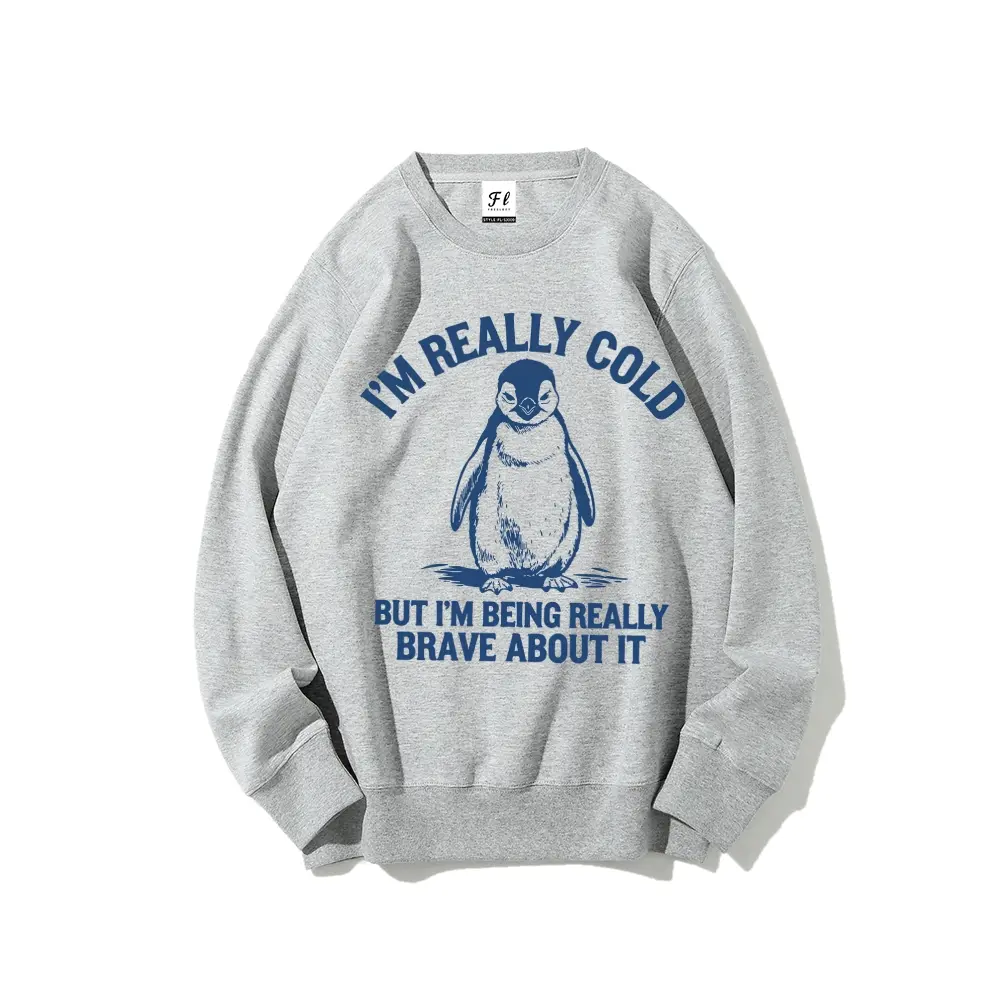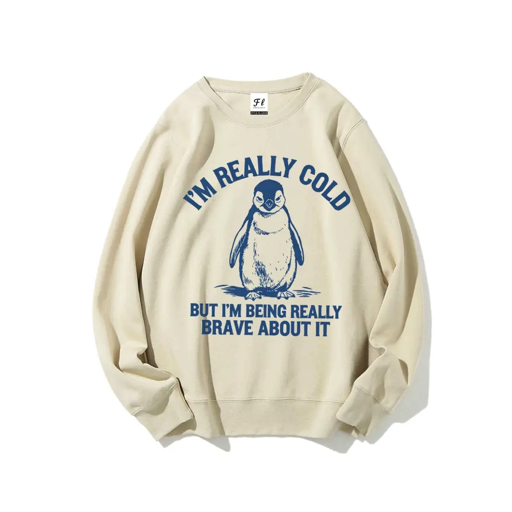 I'm Really Cold But I'm Being Really Brave About It Sweatshirt, Funny Penguin T-Shirt, Trendy Vintage Retro Cozy Hoodie, Funny Gift Printed Unisex Casual Hoodie