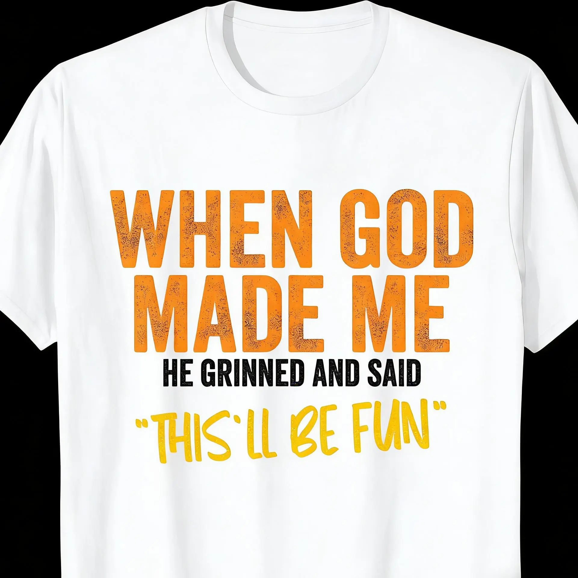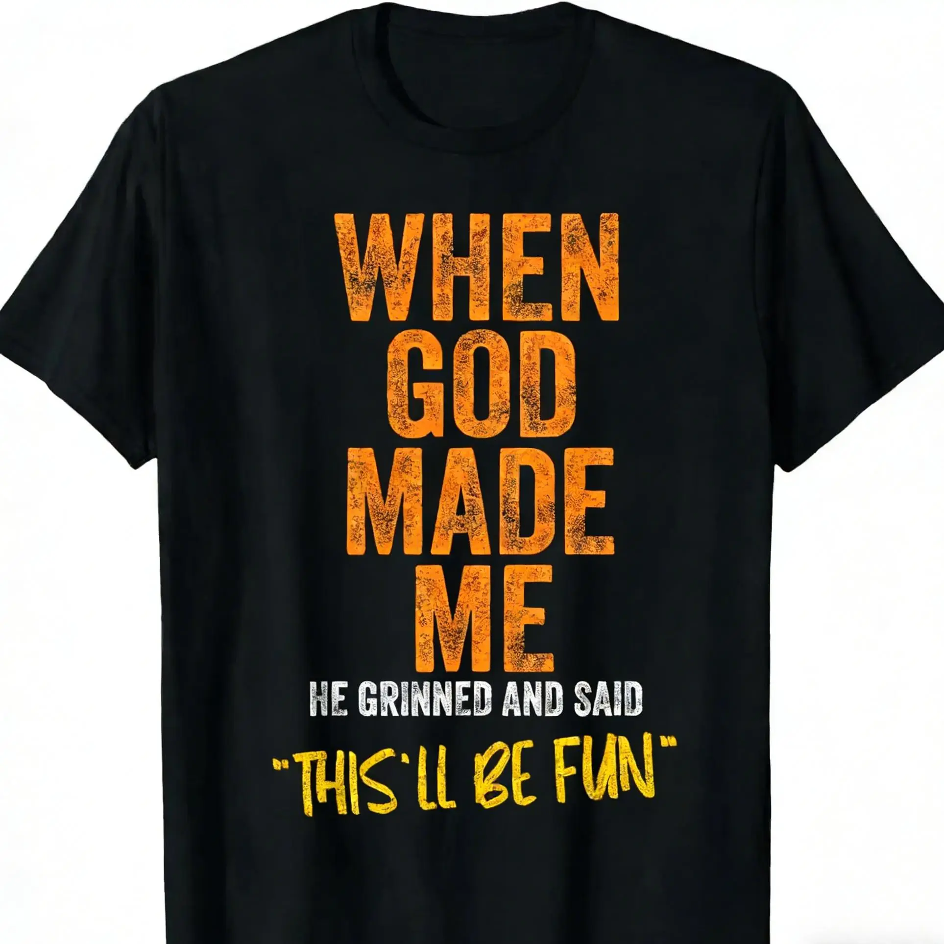 5. When God Made Me Funny Quote T-Shirt - Unisex-Adults, Unisex-Kids - Black - Small - Short Sleeve - Classic Fit - Cotton, Polyester Blend Graphic tees Retro Double-Sided Water Wash Vintage Metalcore