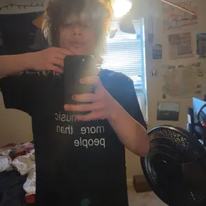 shirt is amazing love the writing on it but next time should have picture of actual people wearing the size so that people can see what size they are order. I order an M but theres no way that this is an actual M.