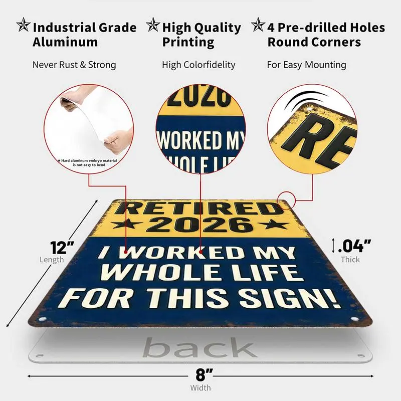 This charming aluminum sign is more than decor — it’s a tribute to dedication, hard work, and the joy of a well-earned retirement.