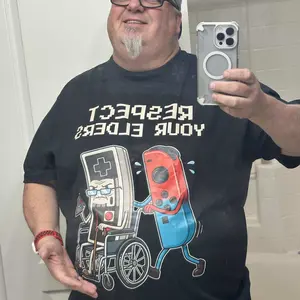 Love this shirt ,fits perfectly glad i got a size up ,representing Nintendo's first generation to current generation