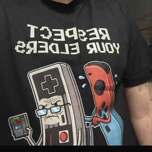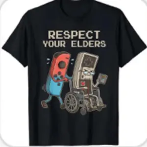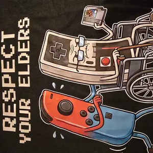 I bought this for my son and he loves it! My mom taught him how to play games on the old Nintendo console and she bought him his switch. The shirt is appropriate.
