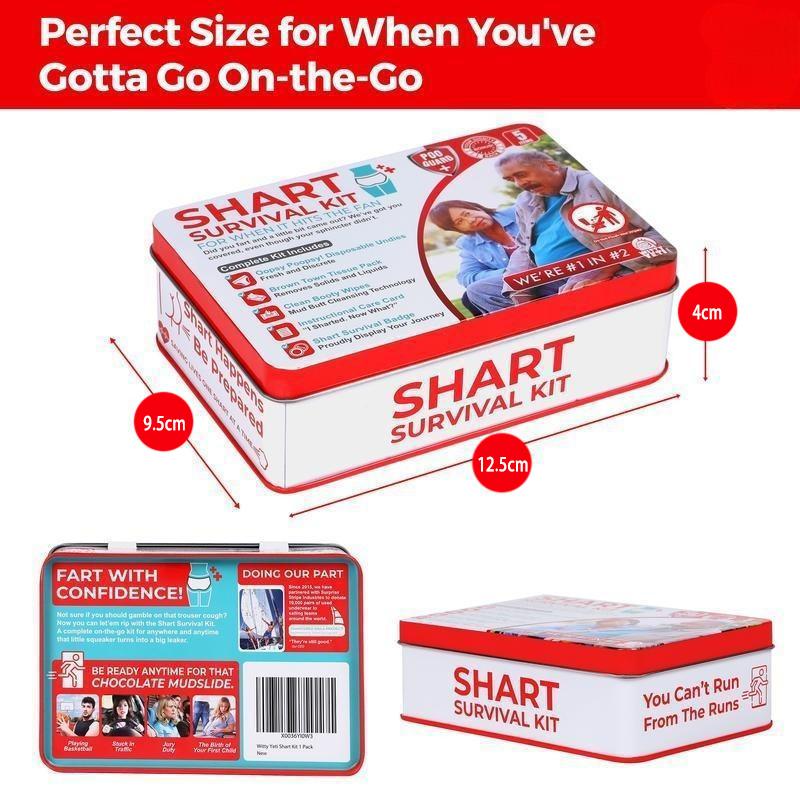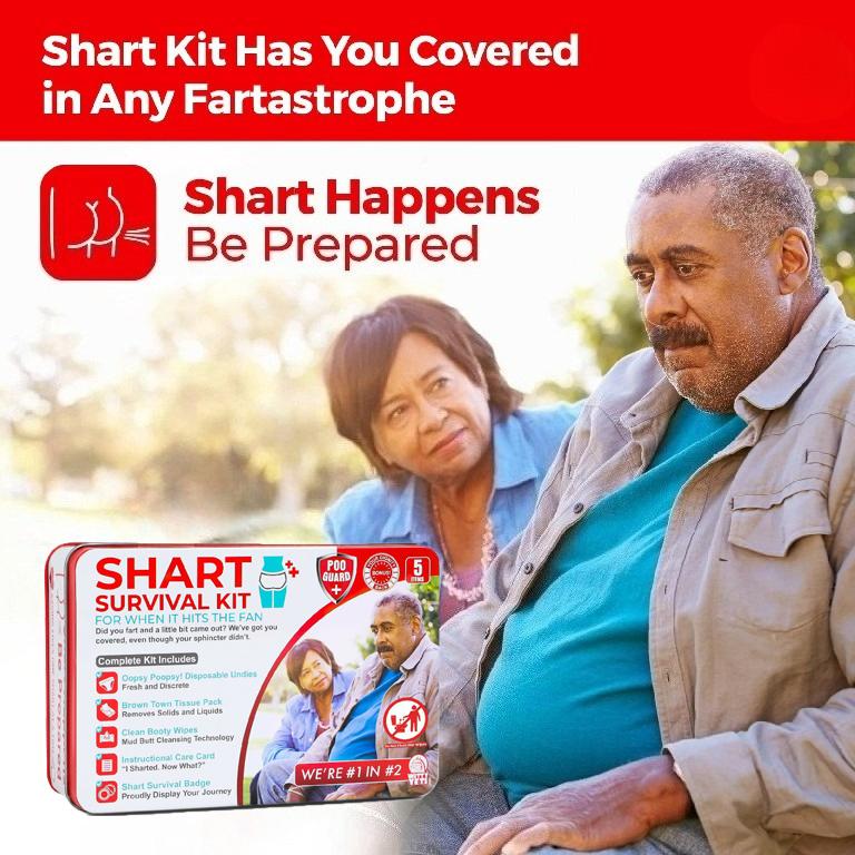 but hey, shi- I mean stuff happens, right? Next time there's an accident on mudslide mountain, be prepared! Our state-of-the-art, travel size shart emergency survival kit has your back..side.