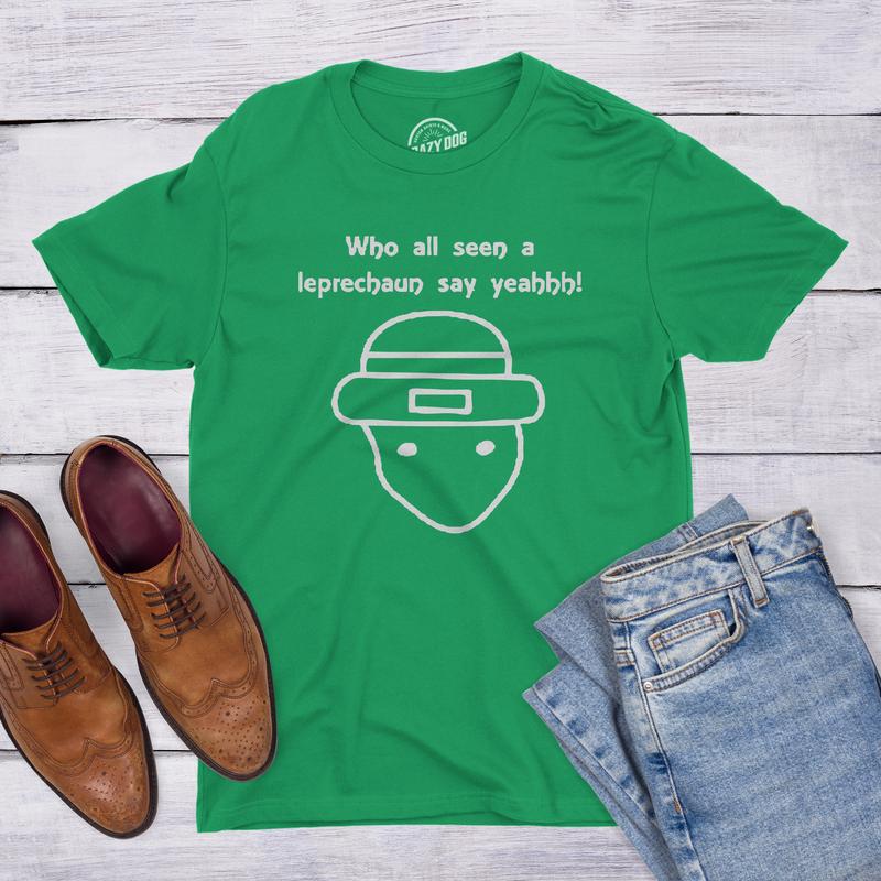 who all seen a leprechaun say yeah t shirt. This funny internet meme is the perfect shirt for the parade!