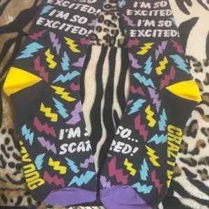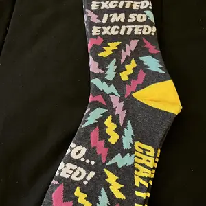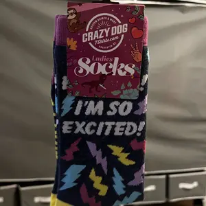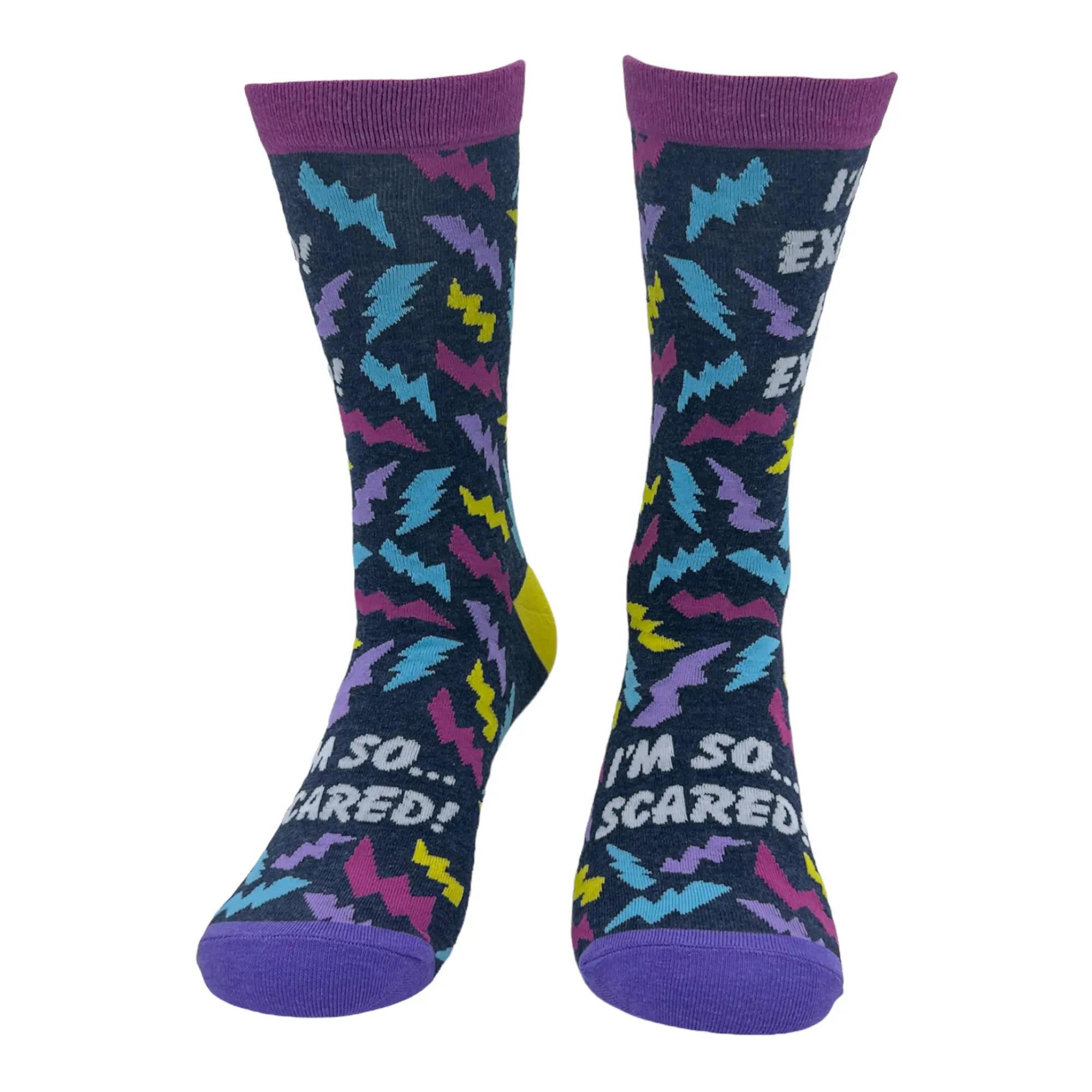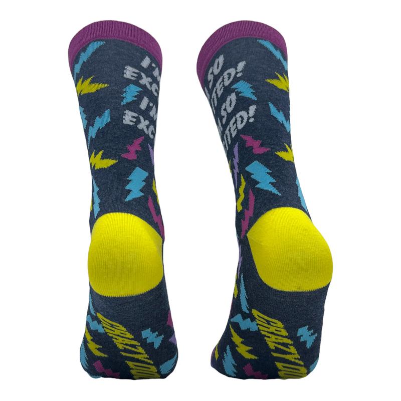 This is a Womens (5-10) Multi - EXCITED Soft Comfortable Funny Graphic Socks sold by Crazy Dog T-Shirts.