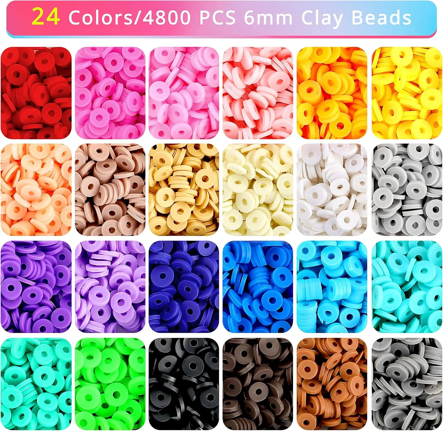 Assorted Colors: The 6mm clay beads comes in 24 different colors. Each color is completely different and bright, so everyone will find their own color to make necklaces, bracelets, rings, earrings, hair braids and other DIY projects.