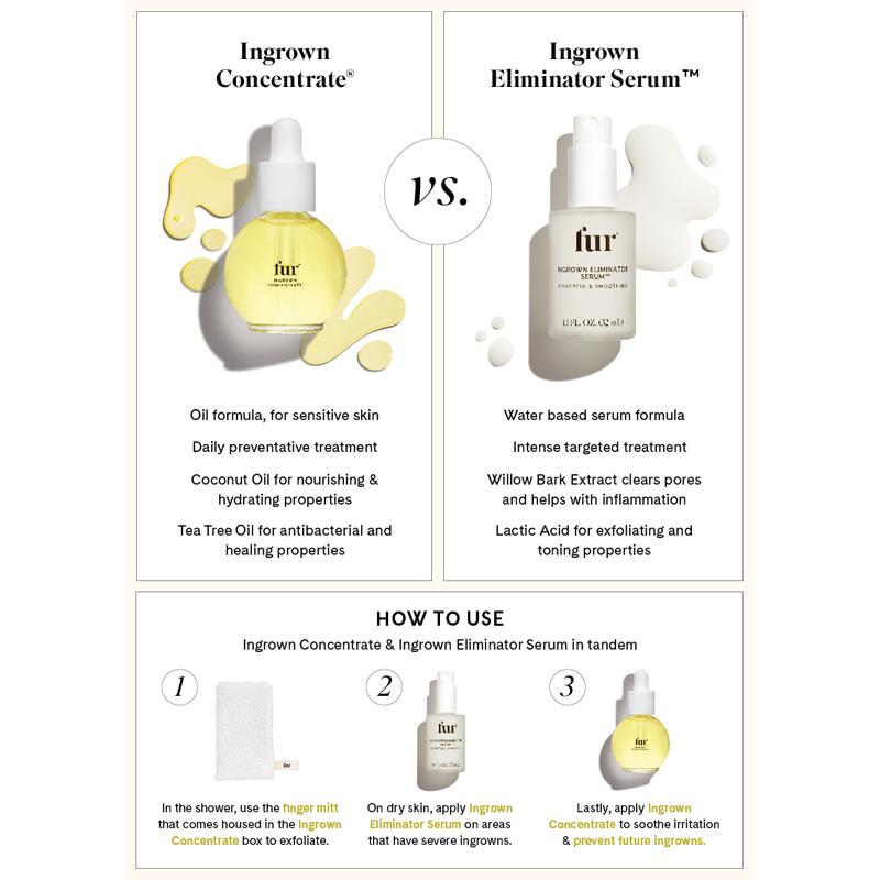 The Fur Ingrown Concentrate cleared everything up way faster than I expected. It calms the redness, helps the bumps go down, and actually prevents new ones if you stay consistent. I use the little exfoliating mitt it comes with too and it’s so satisfying without being too rough.