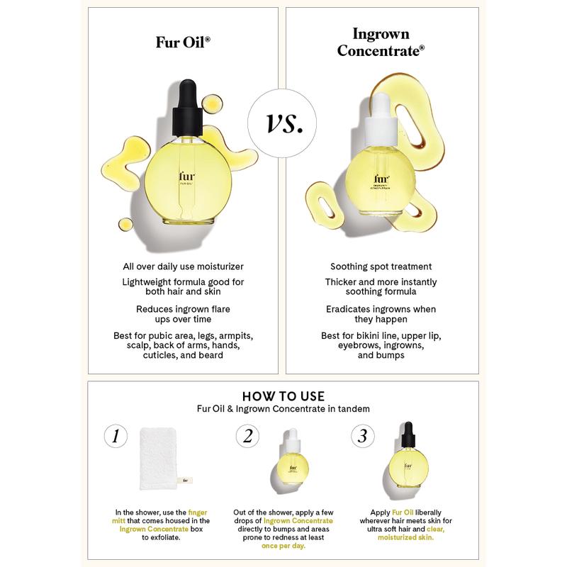 Where: Fur Oil is meant to be used everywhere hair meets skin, including pubic area, underarms, chest, legs, and face.