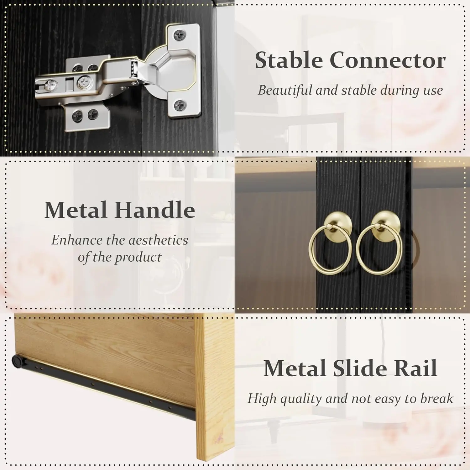 ·Dual large drawers: Equipped with two spacious drawers, it facilitates organized storage of tableware, kitchen utensils, or daily essentials, making storage more orderly and retrieval more convenient.