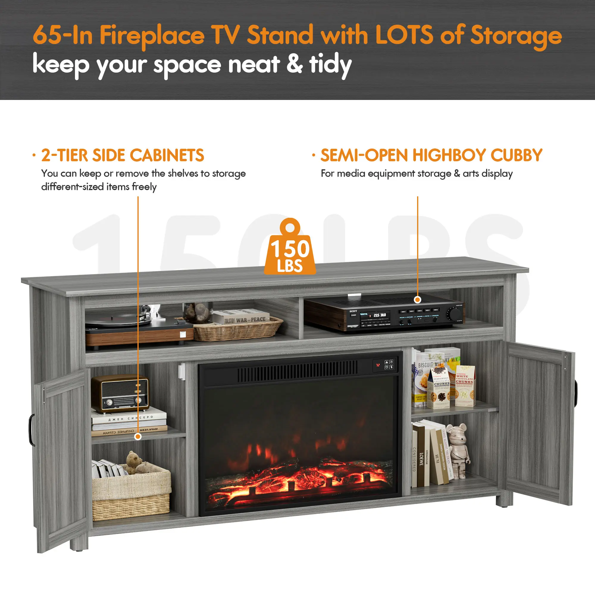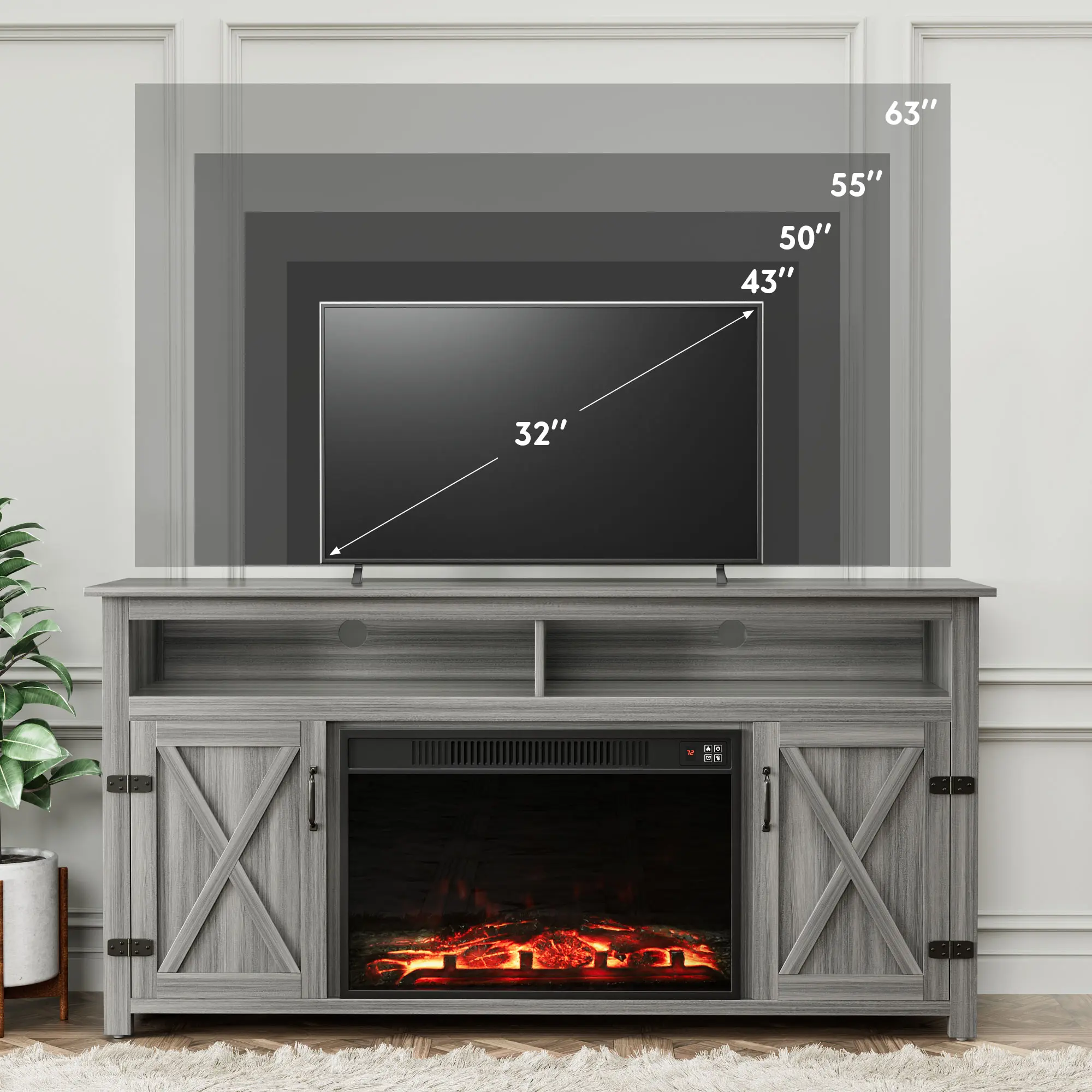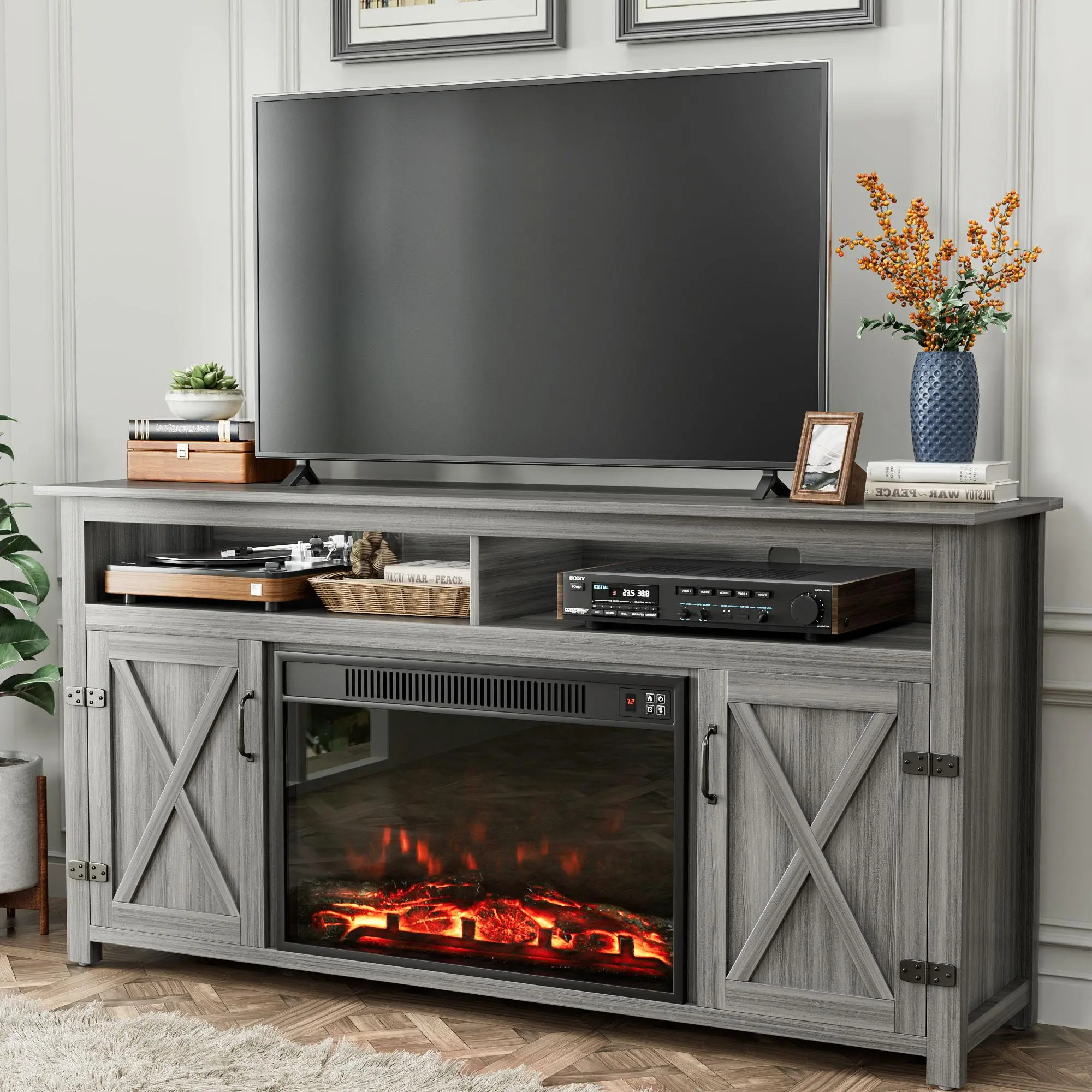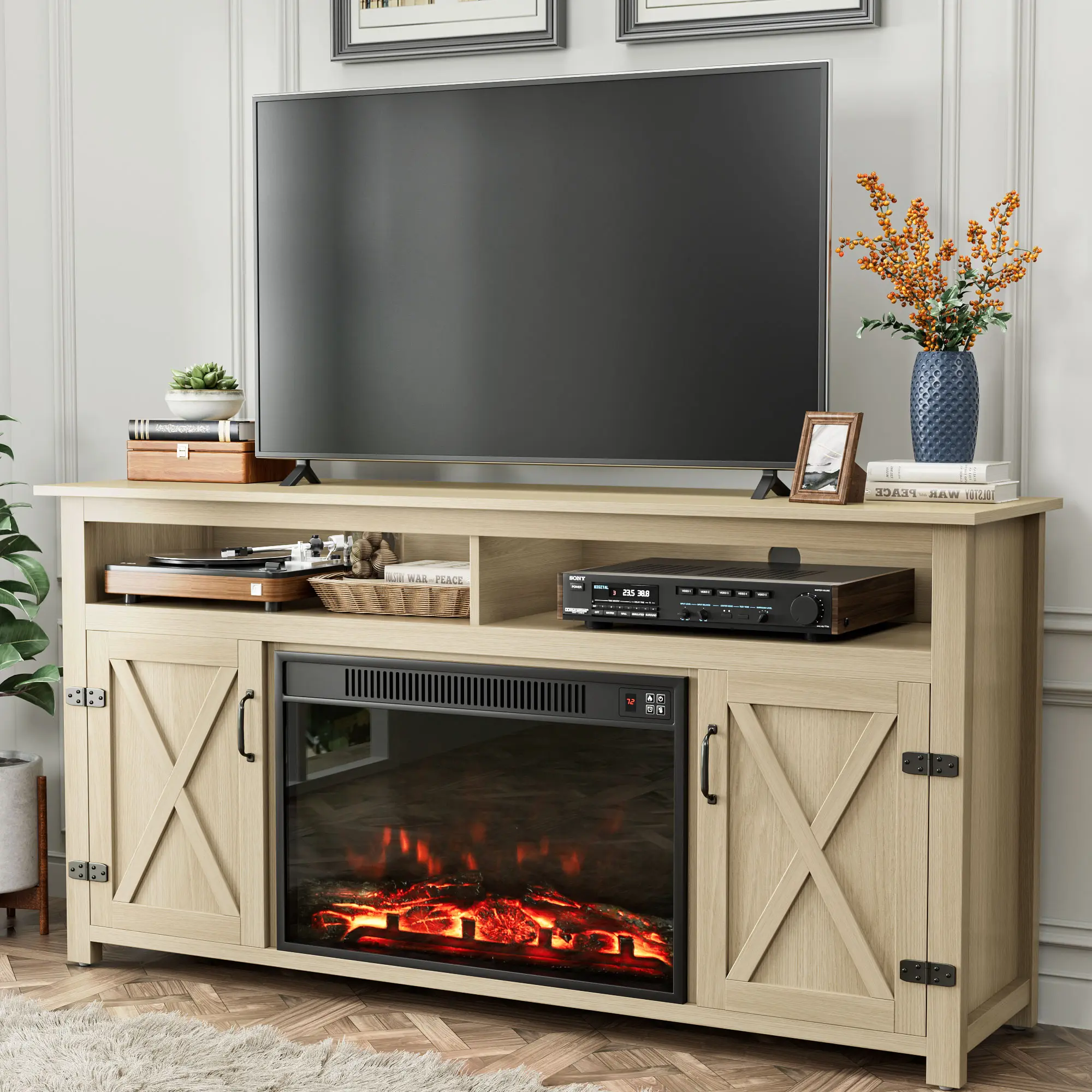 Create a warm and inviting atmosphere in your home with this Electric Fireplace TV Console. The Console includes a remote-controlled 26" electric fireplace insert that gives a realistic glow of a wood-burning flame without all the cleanup and work of a wood-burning fireplace. This fireplace will heat a room to 400 sq. ft. to the perfect temperature from 65° F to 95° F or use it to create a relaxing ambience with its multiple light settings without the heat option. The LED light source boasts up to 50,000 hours of life for a fireplace that will last for years to come. Made of laminated MDF and particleboard, the weathered medium brown finish emulates an old wooden barn giving this piece a cozy feel.