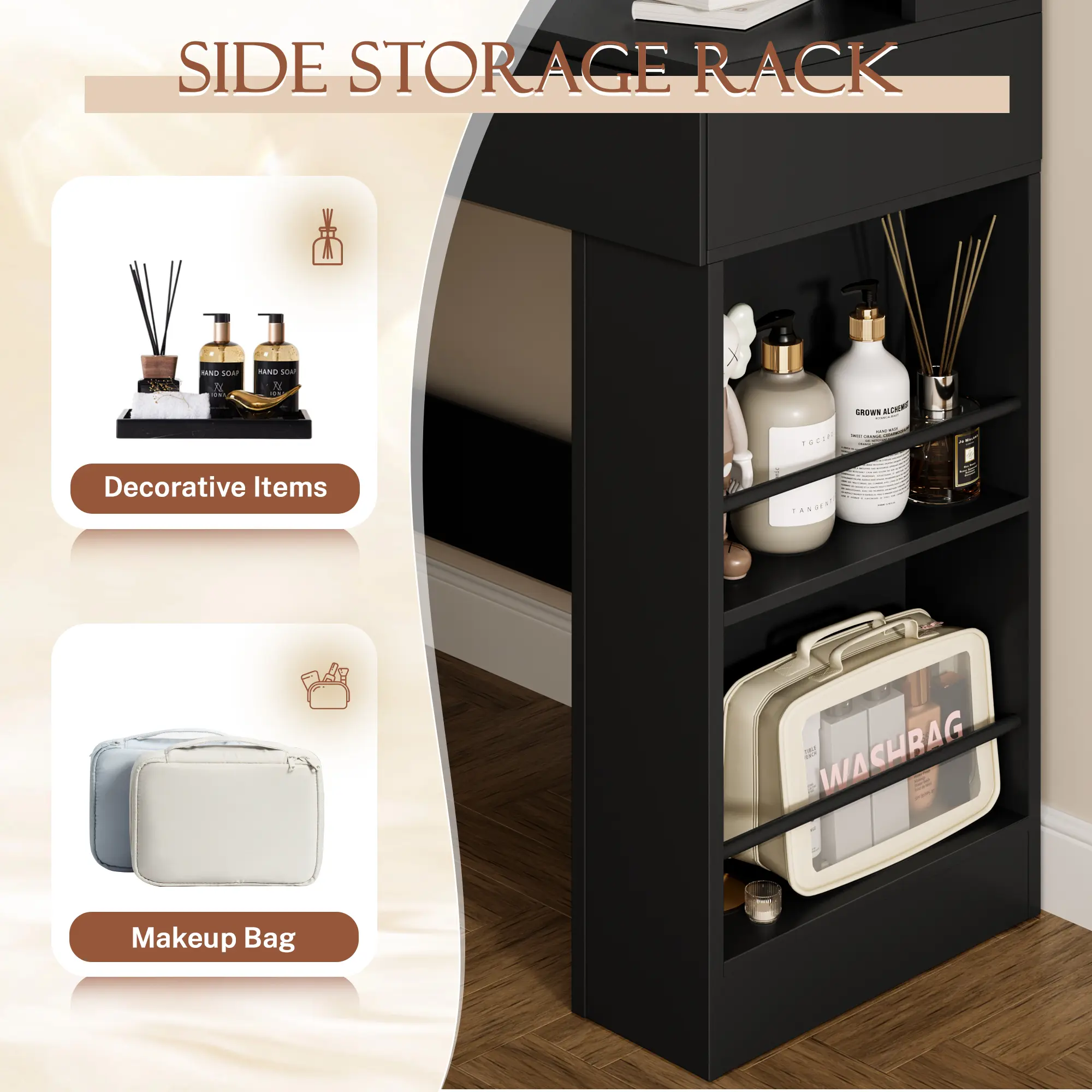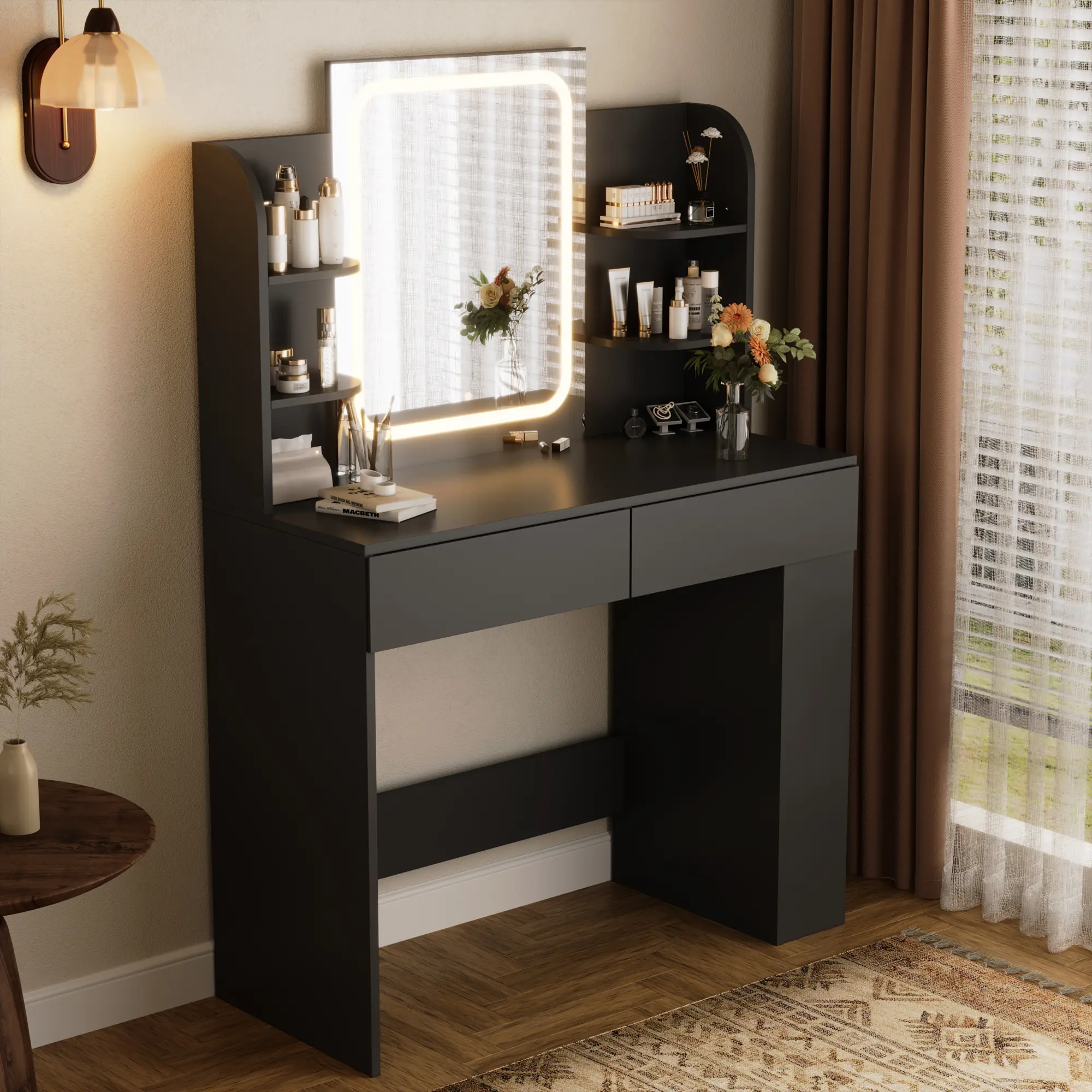 ·Step-by-Step Instruction: Our vanity desk have detailed instructions and each accessory is labeled, you can install them by following the instructions!