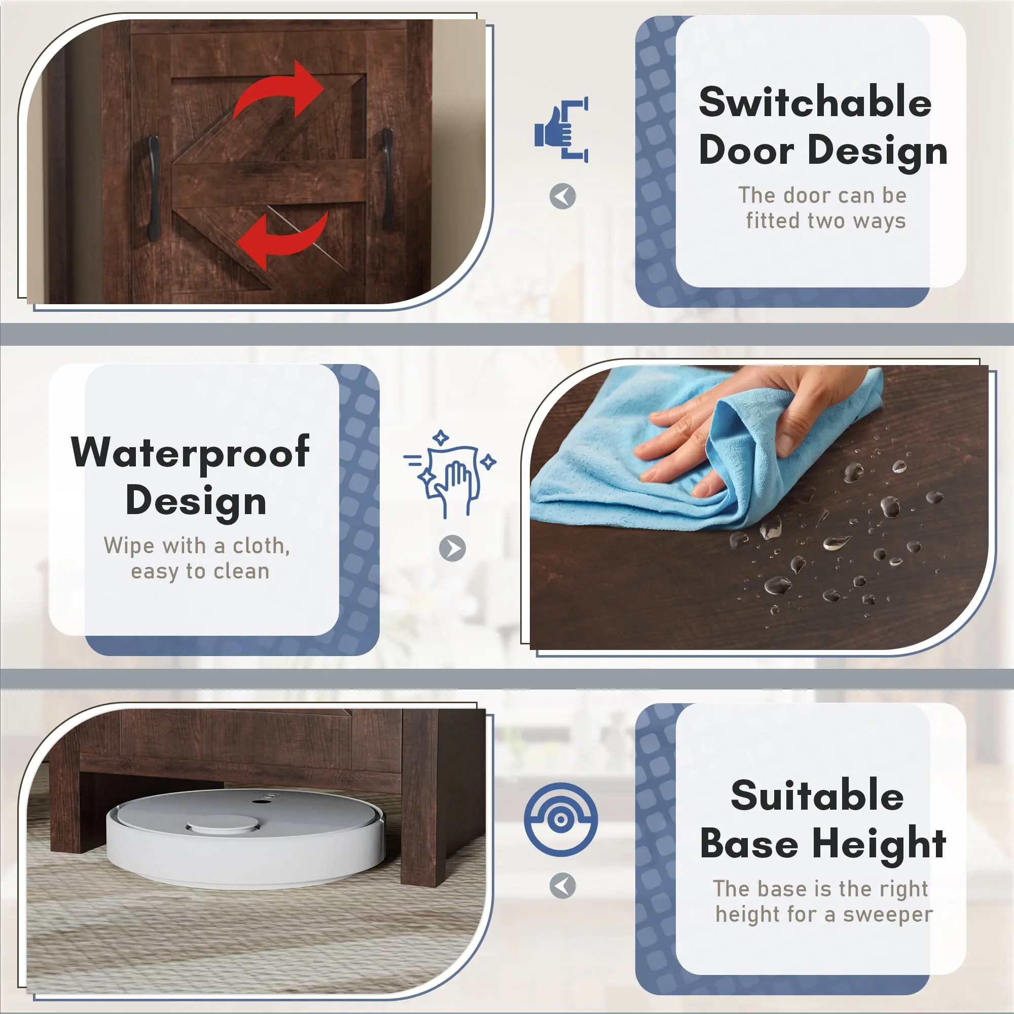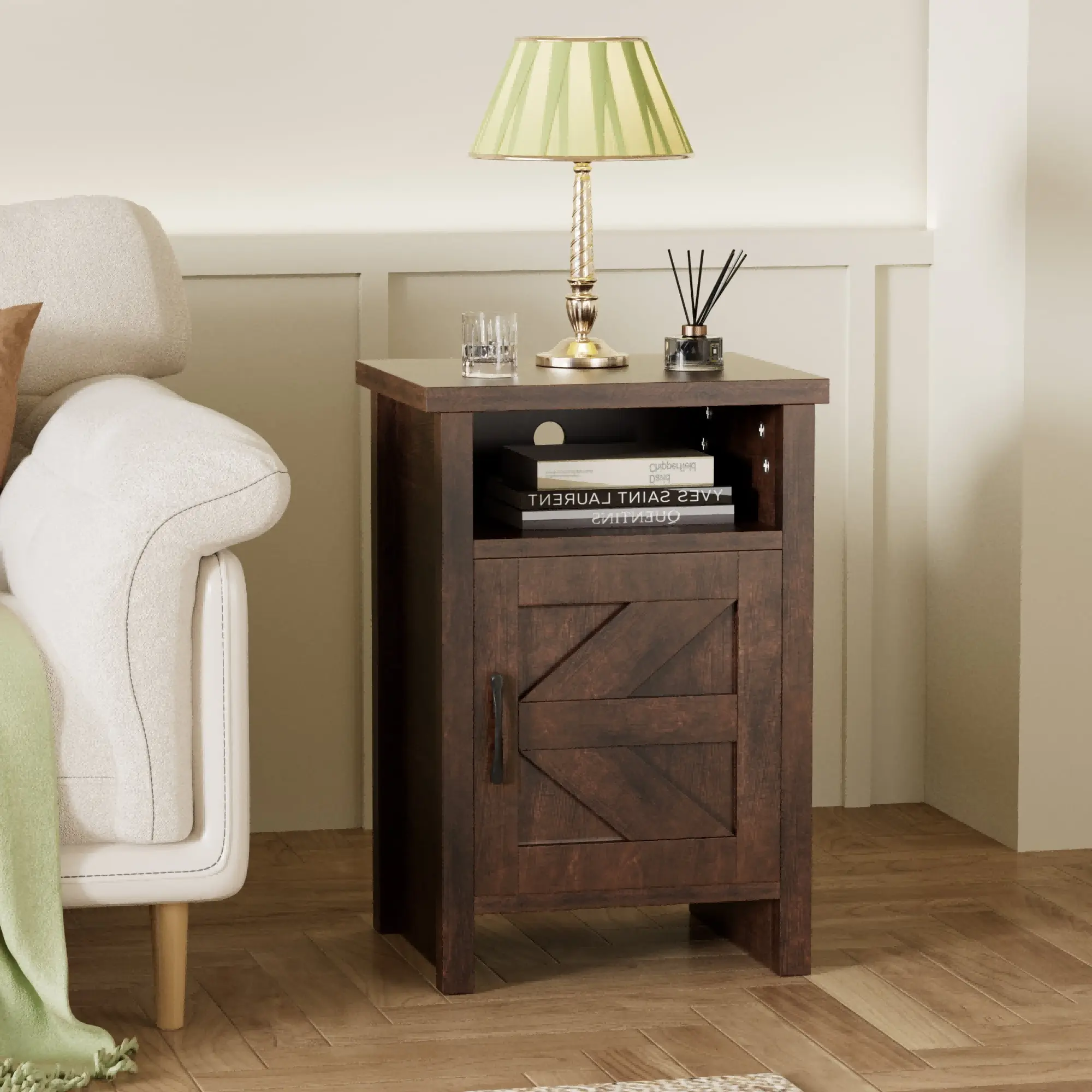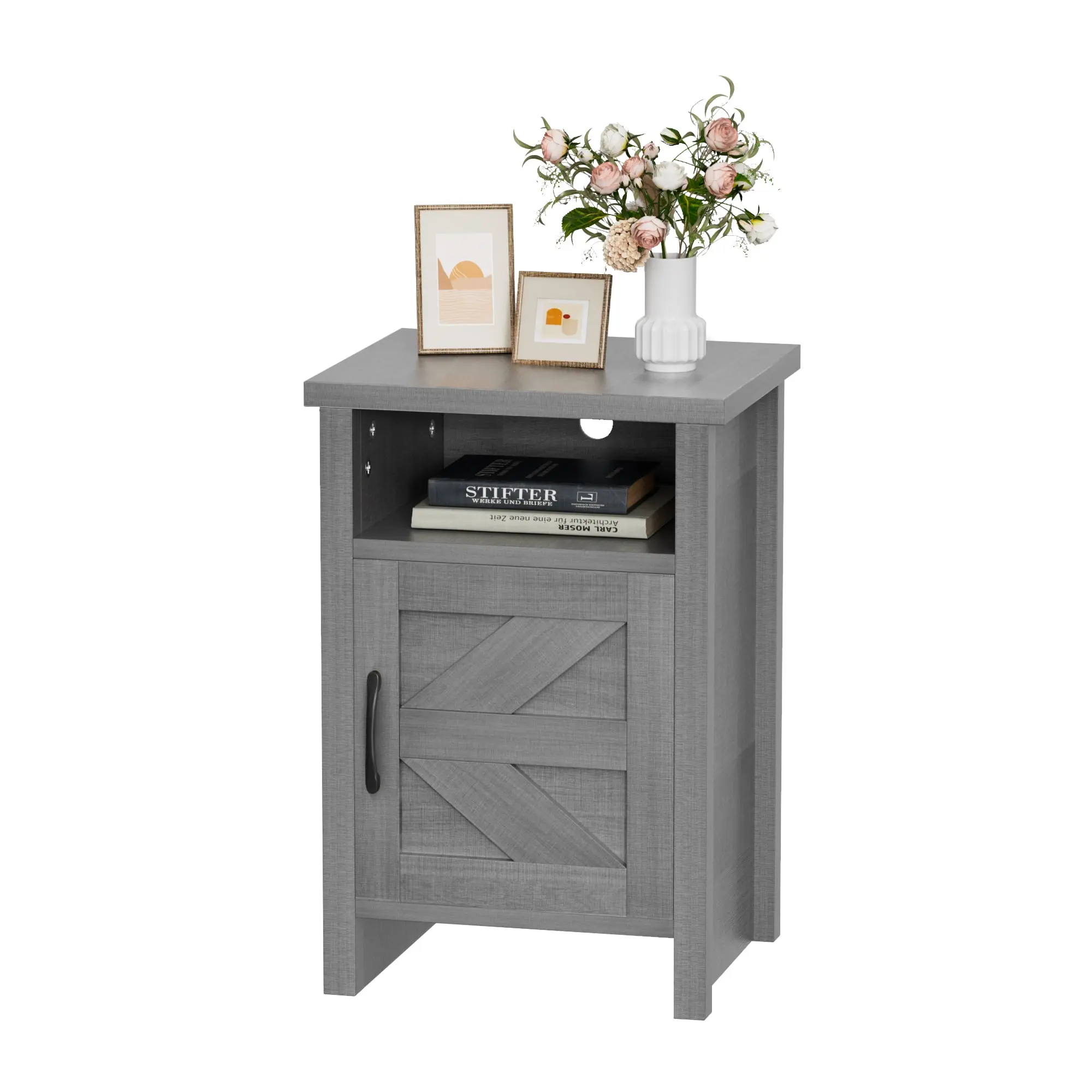 ·【Intimate design】: Slippers can be placed at the bottom of the bedside table, perfect use of every inch of space. Nightstands are equipped with holes to fit sockets into the first level, which can charge your electronics.
