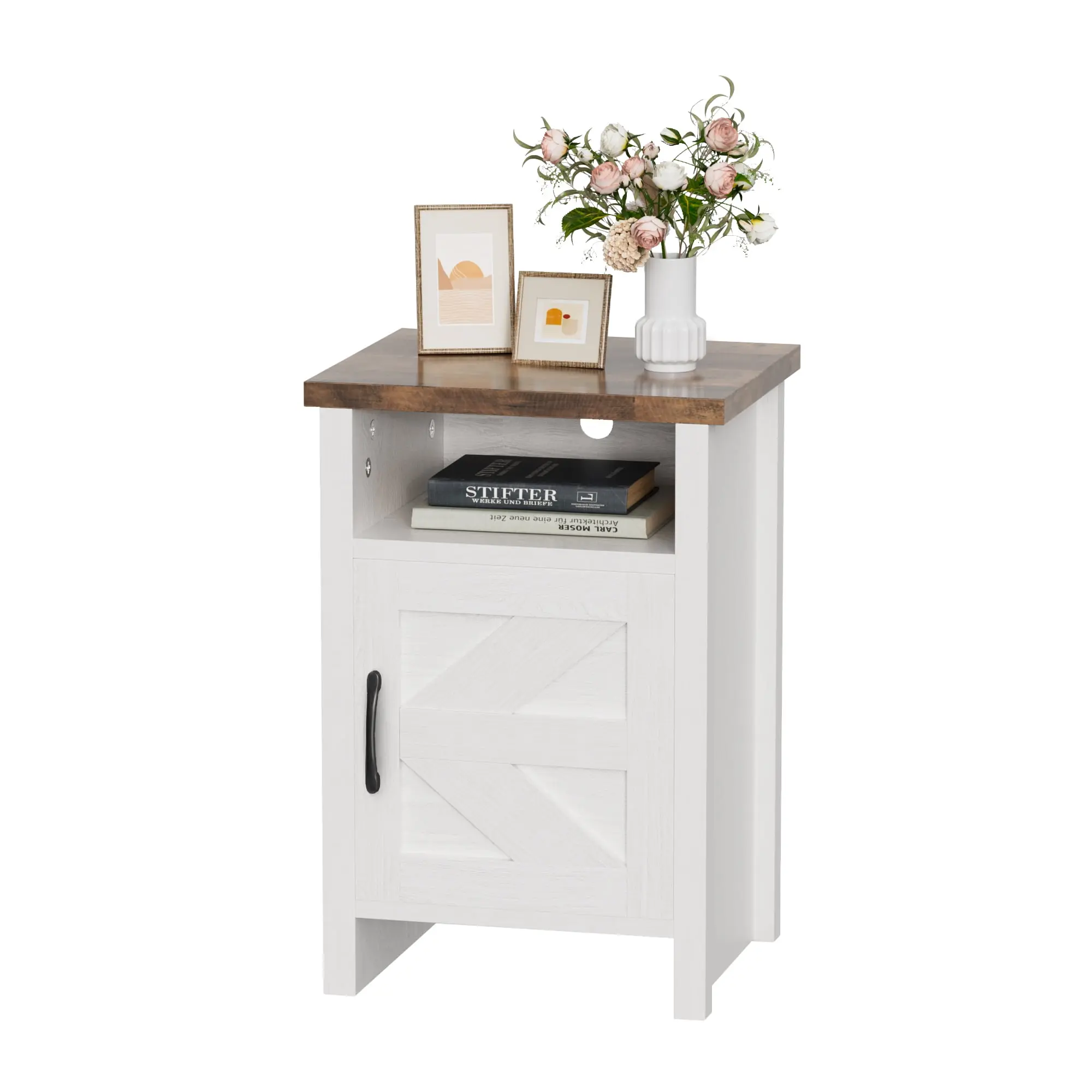 ·【Storage space】: Nightstands have open shelves and open and open cabinets designed to meet your storage needs. You can store items that are easily accessible in the open shelf, and store items that are not used frequently in the lower cabinet.