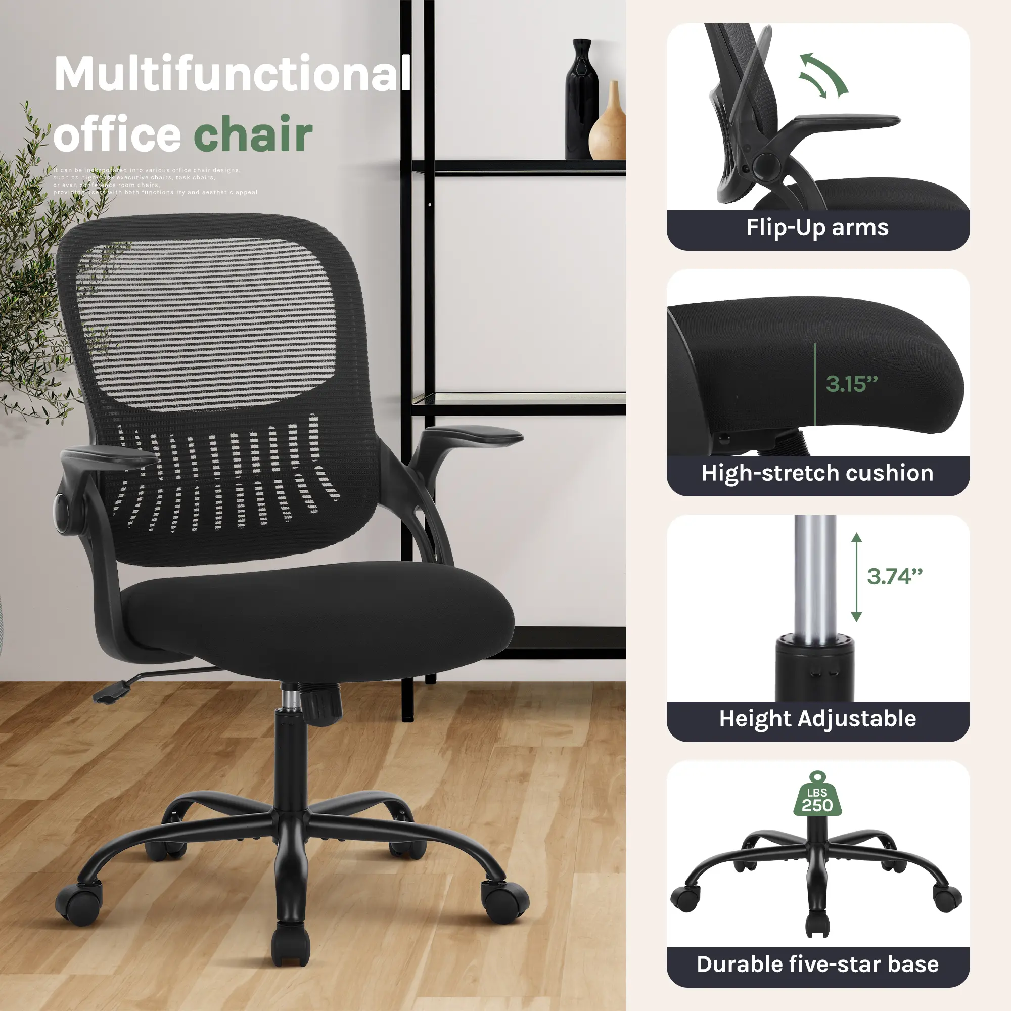 ·【Comfortable Seat for All Day Comfort】- Ergonomic features an all-elastic premium mesh back and a high-density sponge seat making the mesh office chair a good choice for all-day comfortable office seating. The unique mesh design is skin-friendly and breathable, which keeps you cool all day.