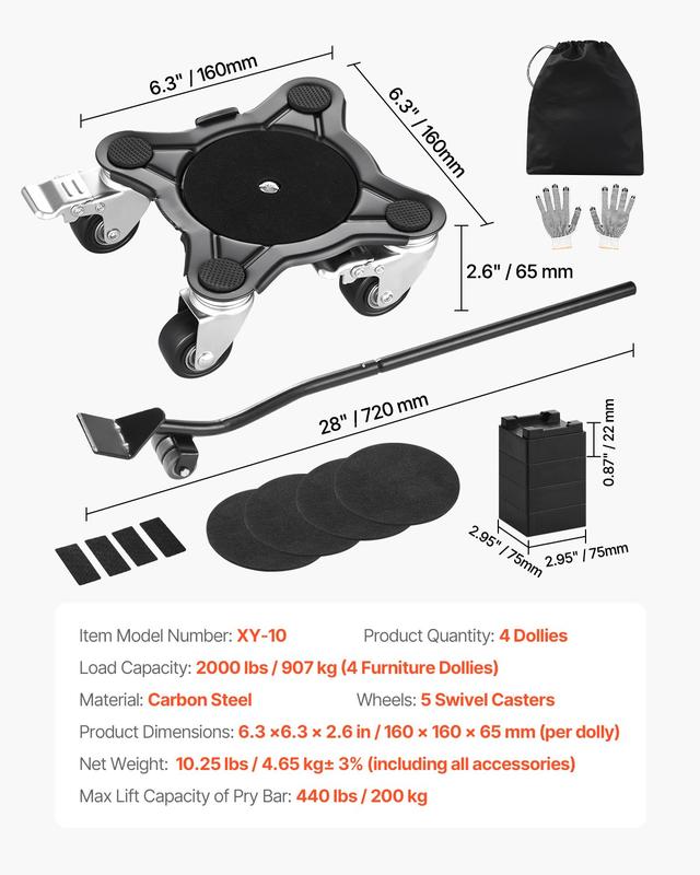 ·Simple and Easy to Use: A pry bar is included to assist in moving, and you can easily lift or shift furniture. Simply place the dolly under the item after leveraging it up, repeat for all corners, and then push steadily for effortless transport.