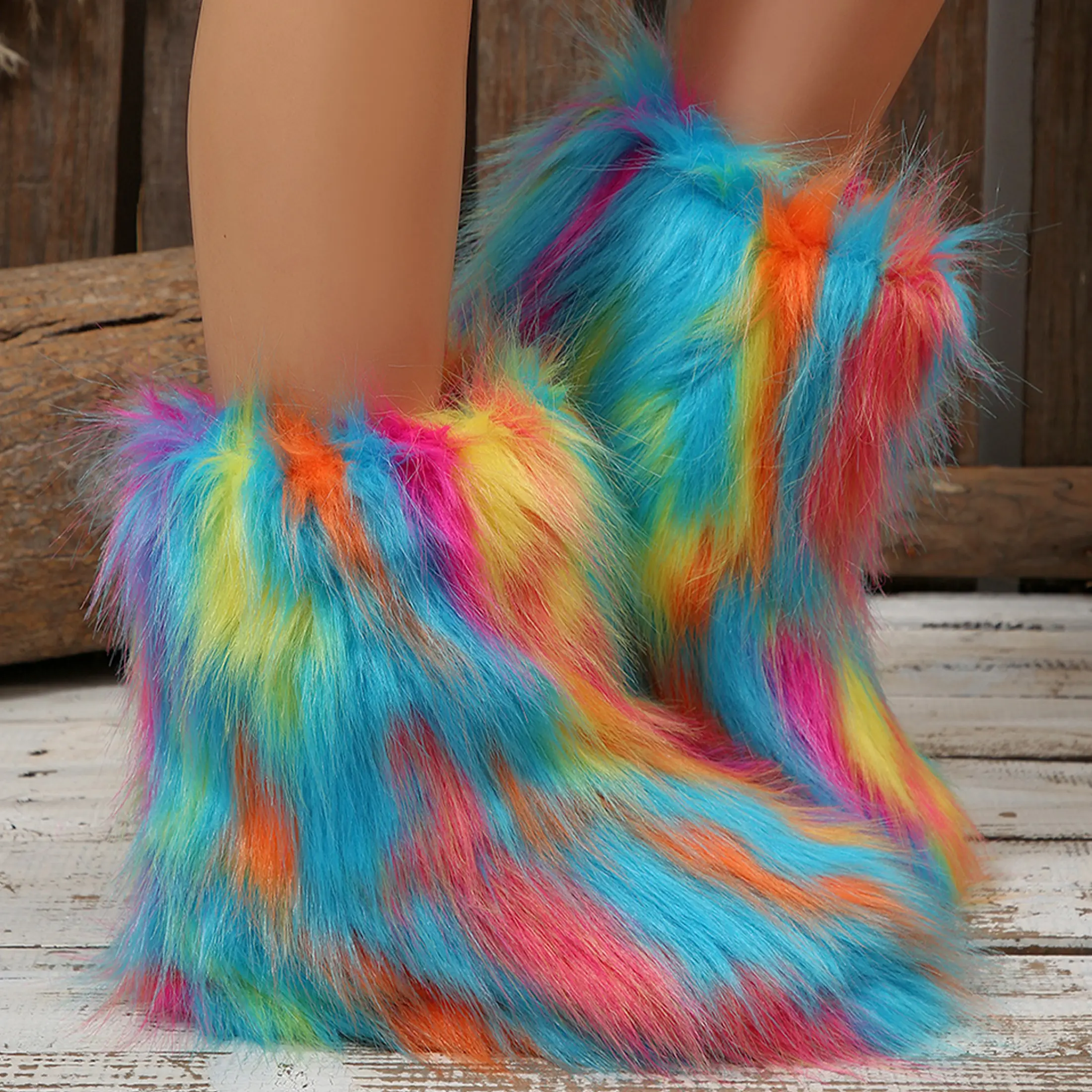 The fur boots are nice and fluffy and the Bottoms are hard so you can walk outside with them
