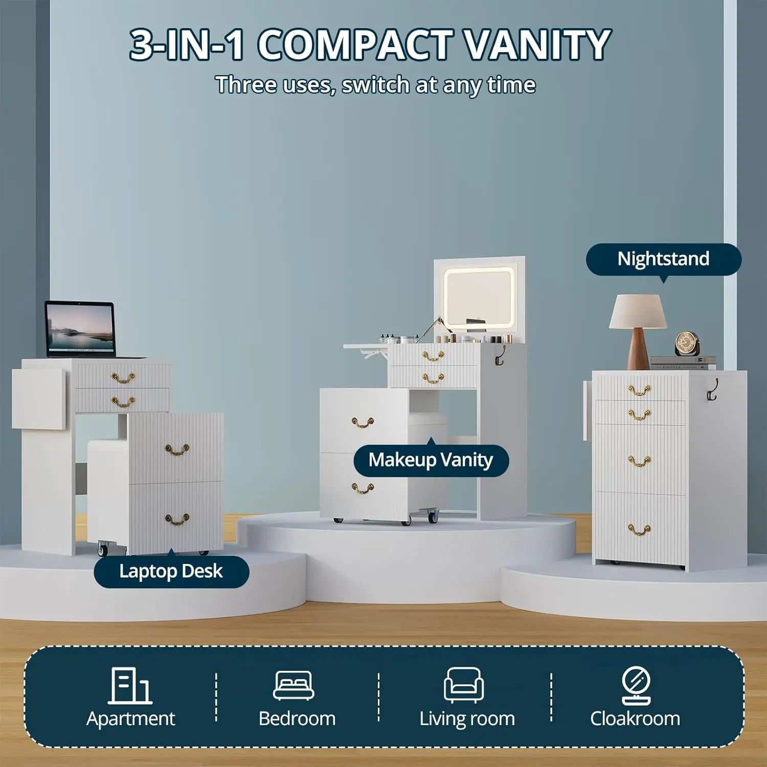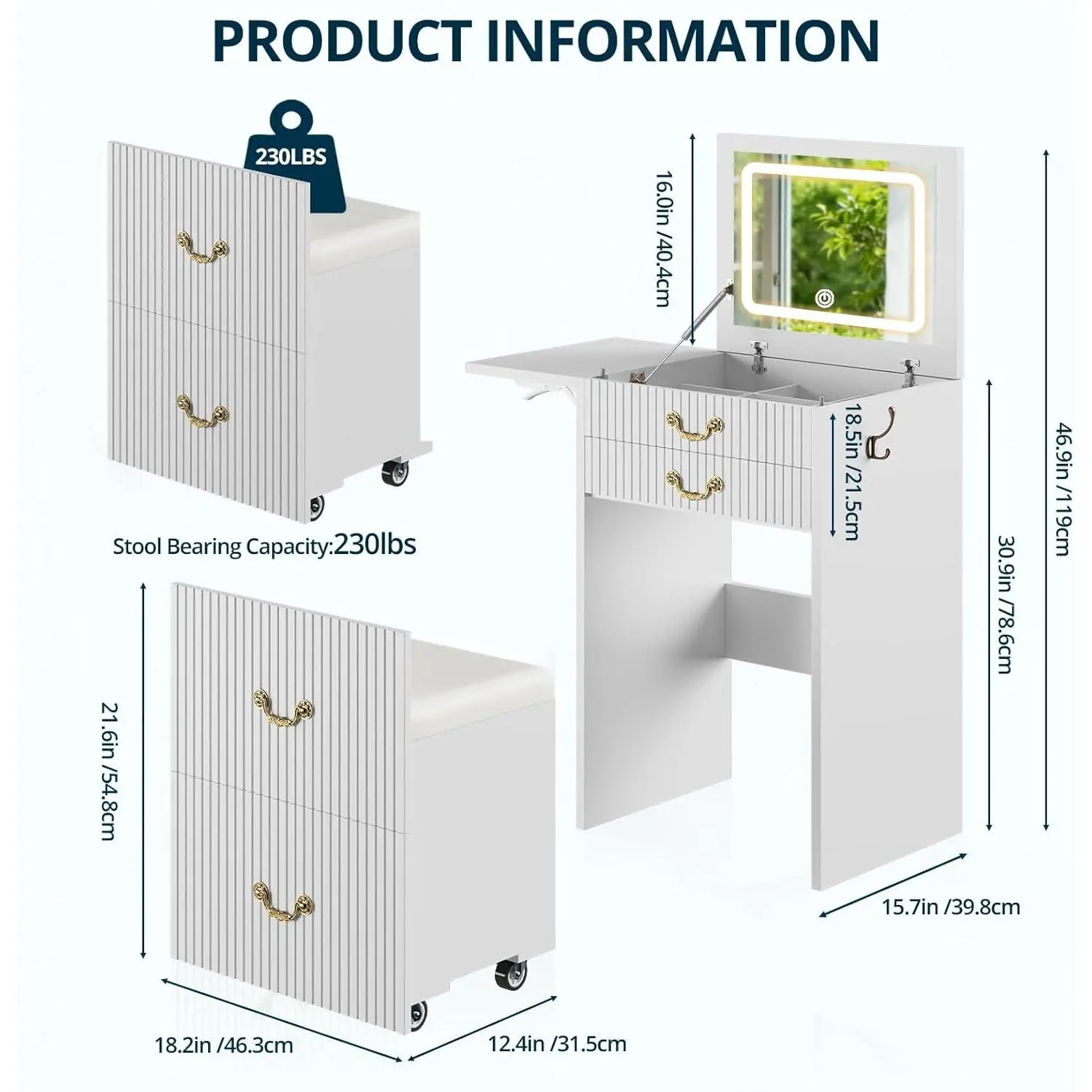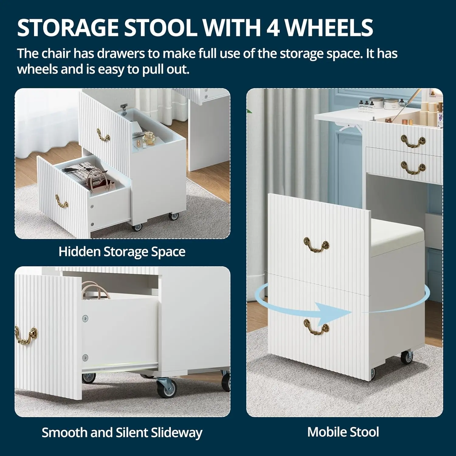 ·Rolling Stool: Included for added convenience, the rolling stool makes it easy to sit and apply makeup. 🌟