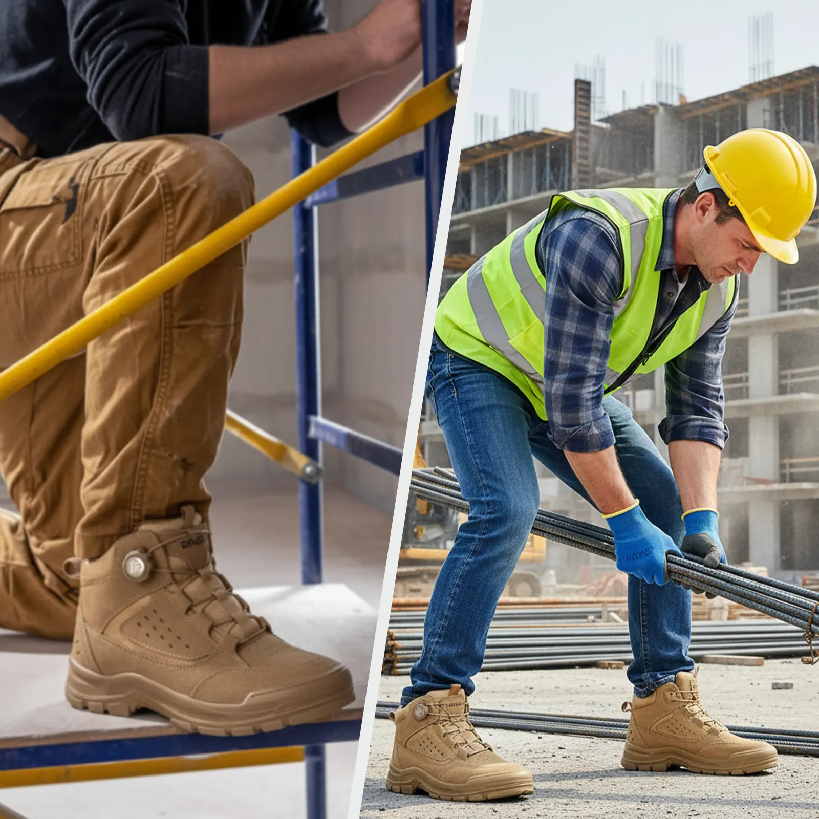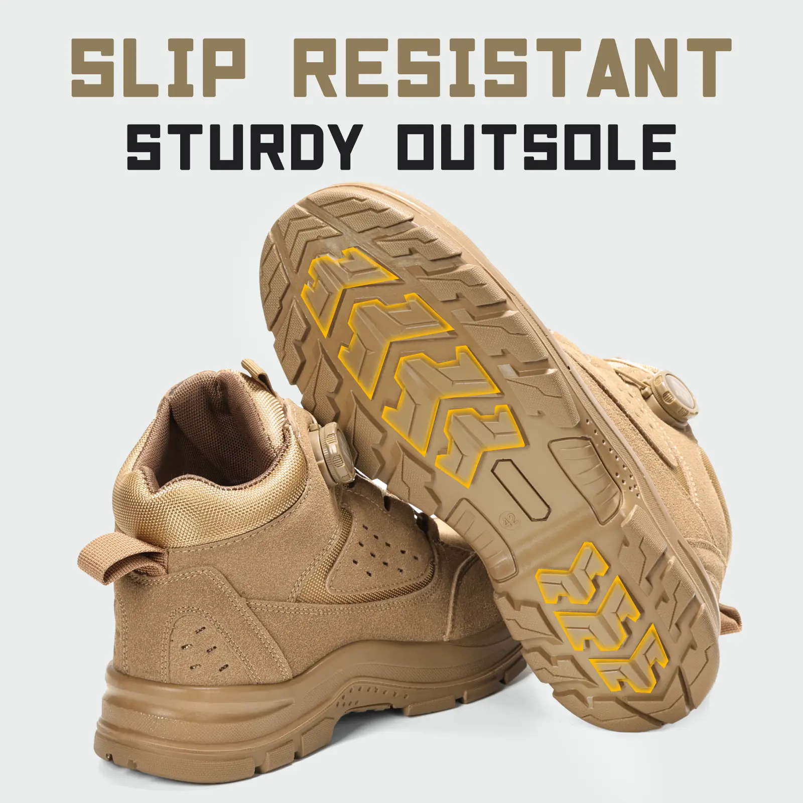 These steel toe wedge boots feature a multi-layer sole. The anti-puncture midsole provides protection against accidents. The slip-resistant design ensures stable and safe steps during daily usage. Ideal for construction and work environments.