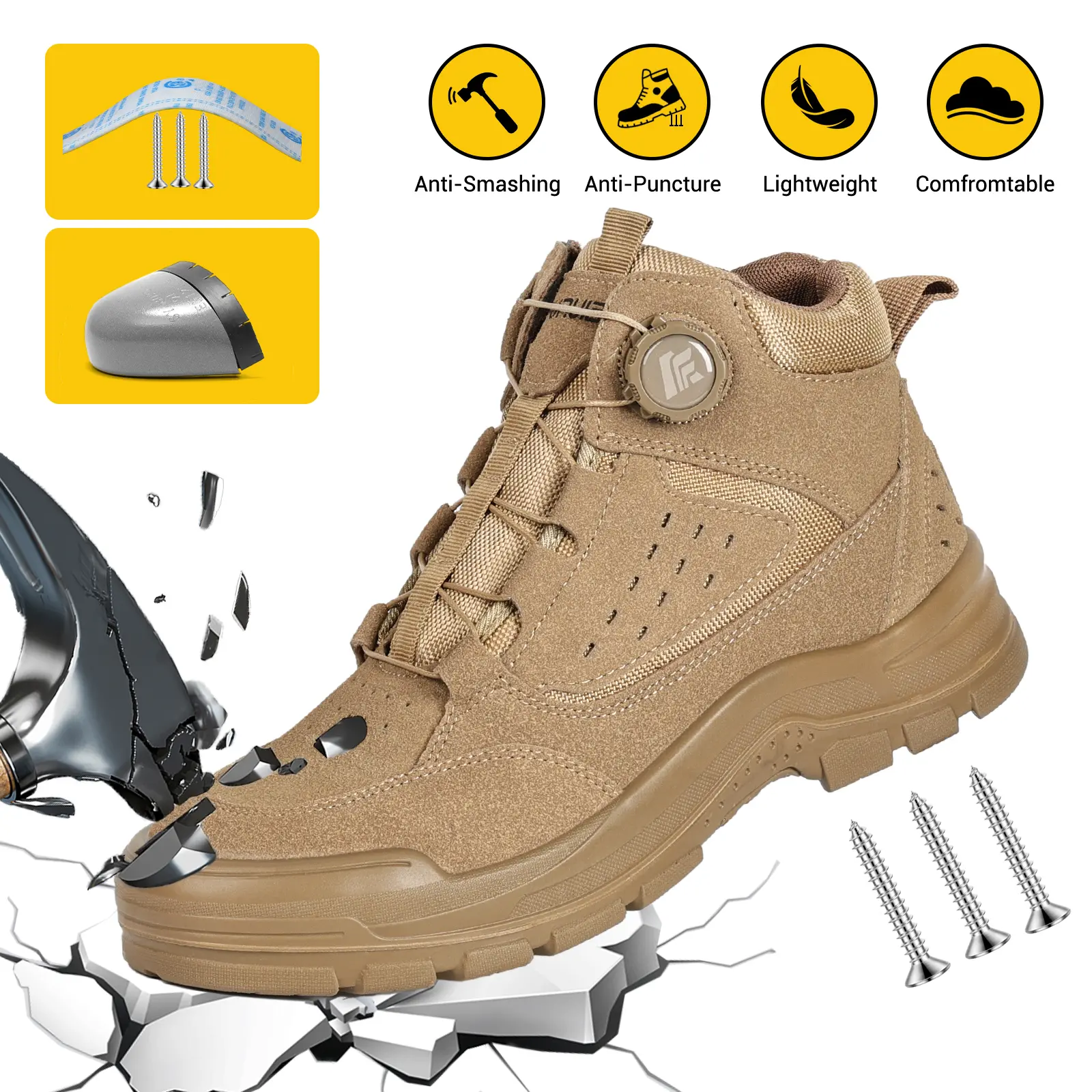Furuian Steel Toe Boots for Men Women Comfortable Lightweight Work Boots for Men Slip Resistant High Top Steel Toe Rotating Buckle Safety Shoes Puncture Proof Indestructible Construction Shoes