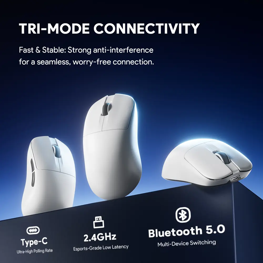 ·Tri-Mode Connection: 2.4GHz / Bluetooth 5.2 / Wired — switch freely between devices.