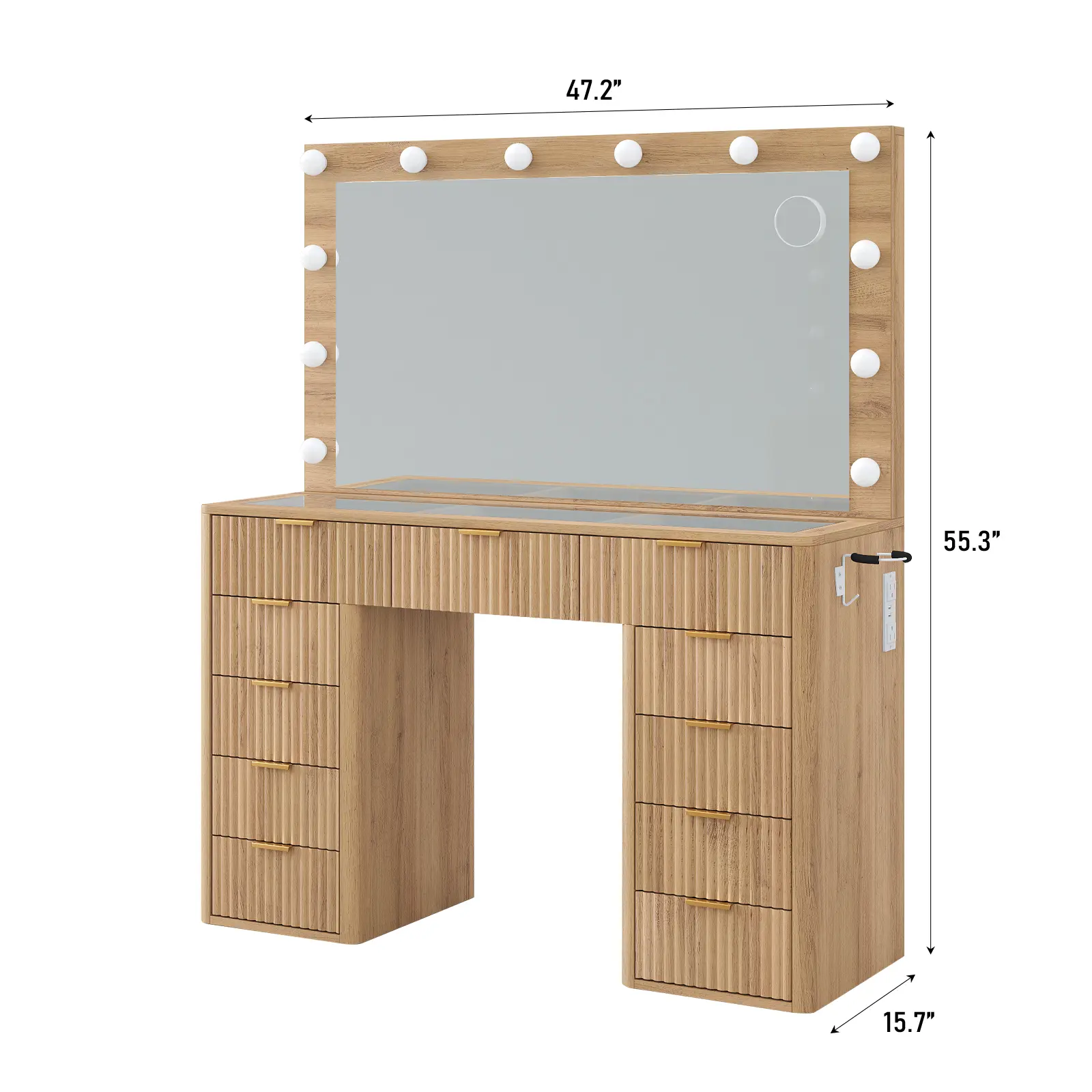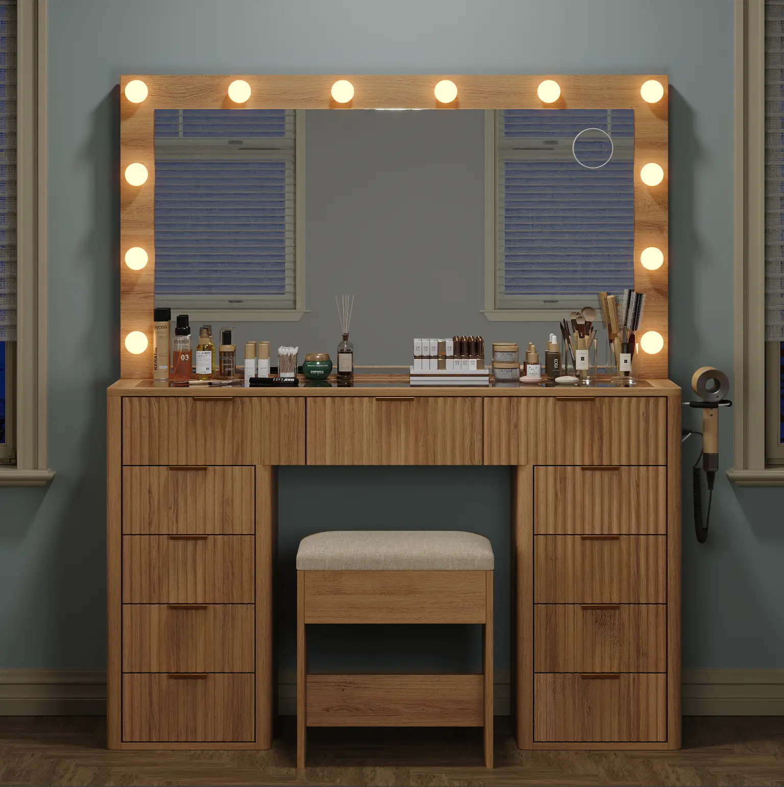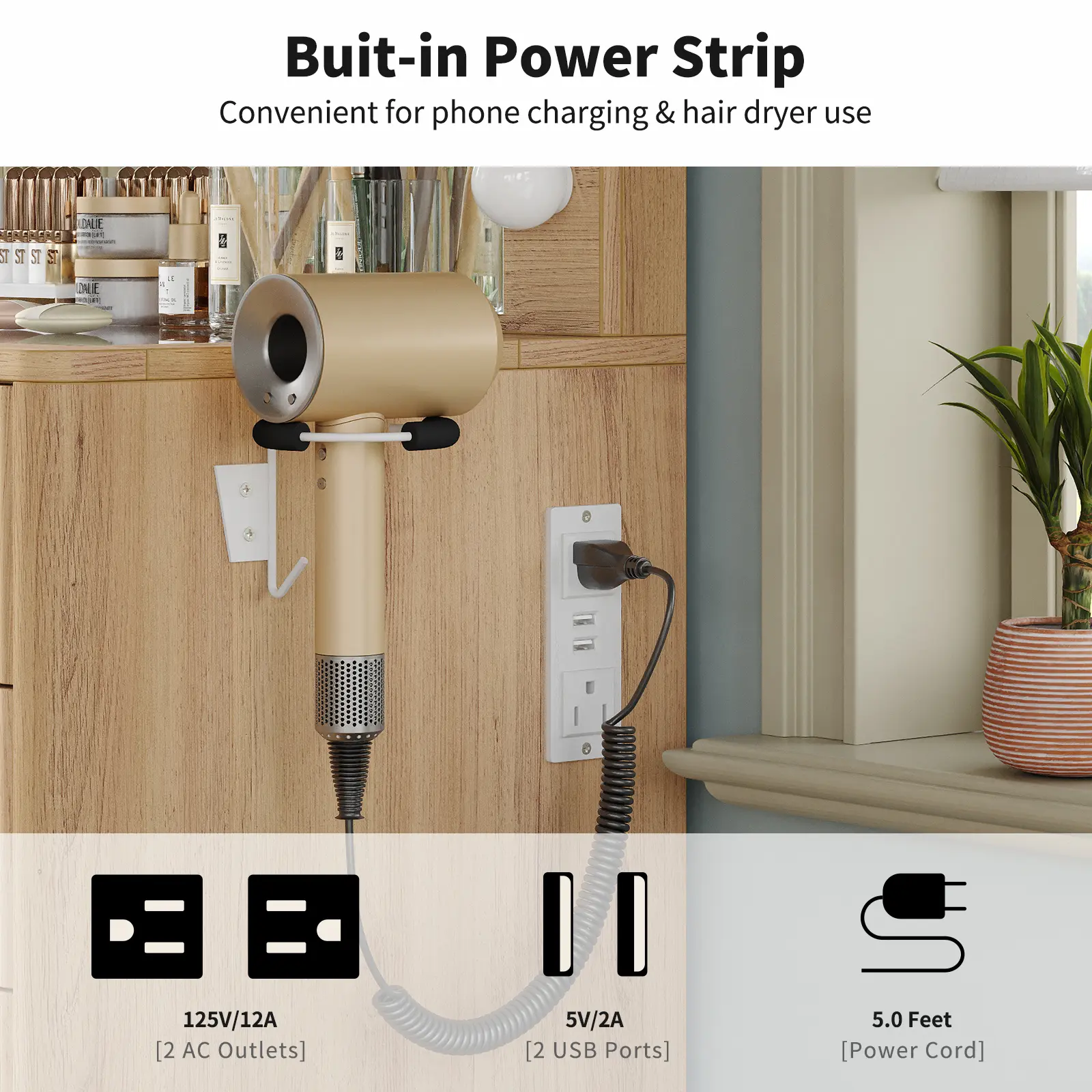 Vanity Come with Charging Station: This makeup vanity equipped with power outlet and hair dryer, featuring 2 standard plugs and 2 USB ports. Now you can easily charge your hair dryer, curling iron, phone, or tablet on this vanity table, making your beauty routine seamless and efficient