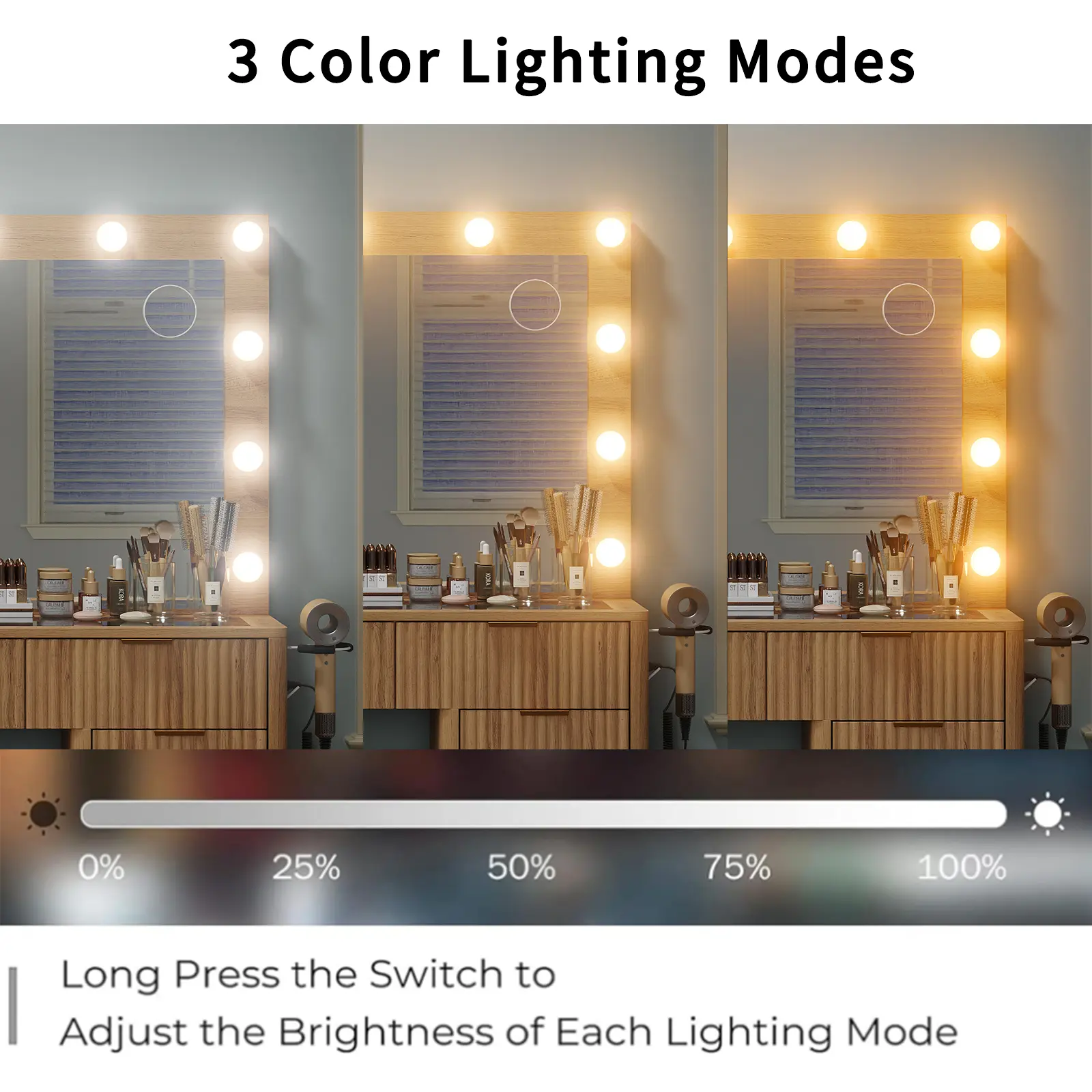 3 Brilliant Lighting Options: The vanity is surrounded by 12 LED bulbs that illuminate your beauty routine; With 3 adjustable lighting modes: cold light, natural light, warm light, you can create the perfect ambiance for makeup application, live streaming, or vlogging in this vanity with lights