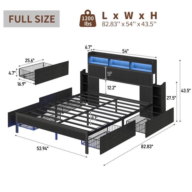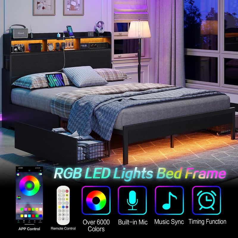 ·Smart RGB LED Lighting: Create the perfect ambiance with 60,000+ color options. Features music sync via built-in microphone, timer function, and control via remote or smartphone app. DIY adhesive strips let you customize light placement on headboard and footboard for immersive bedroom lighting.