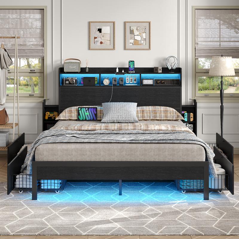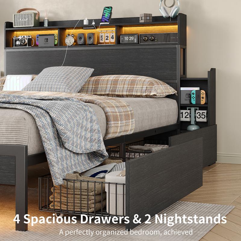 ·Massive Storage Drawers & Hidden Nightstands: Maximize your bedroom organization with this smart storage bed. Features 2 large pull-out fabric drawers for bulk items, plus 2 hidden slide-out nightstands with 3 tiers each. Perfect for storing clothes, linens, and essentials while keeping your space clutter-free.