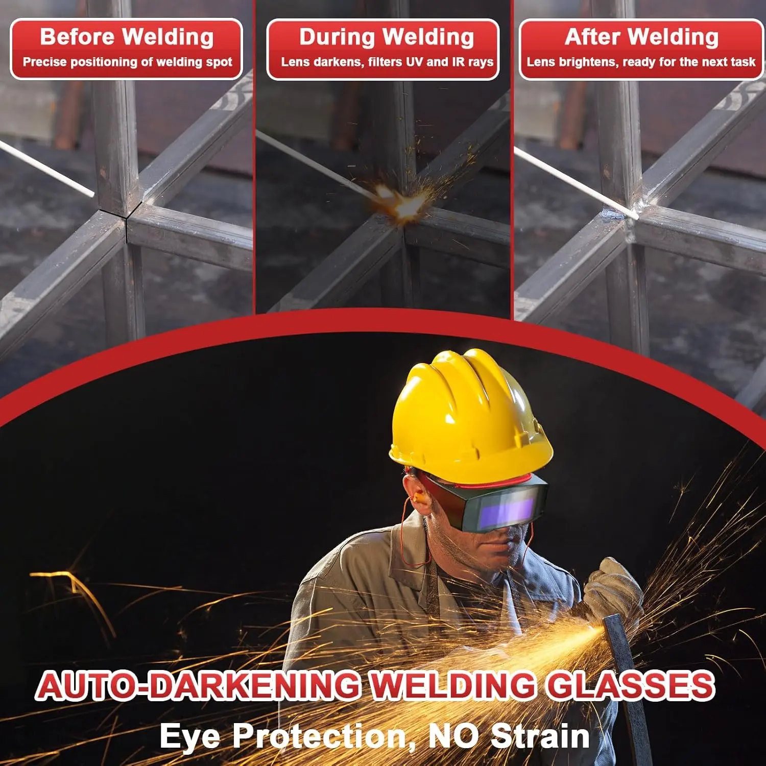 The portable welder machine 110V is innovatively equipped with auto-darkening welding goggles that provide comprehensive protection against harmful welding arc flashes, improve welding results, and ensure a safer and more comfortable welding process.