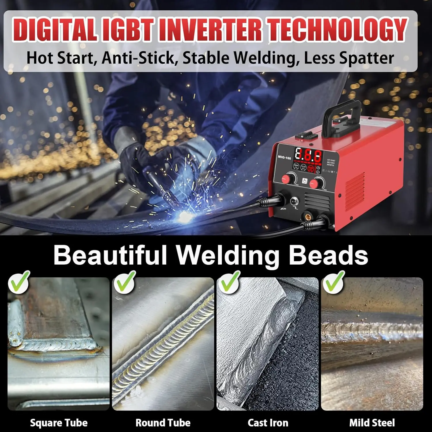 The MIG welder built-in IGBT inverter technology, with hot start and anti-stick function, fast arc start, stable welding, less spatter, and beautiful welding beads.