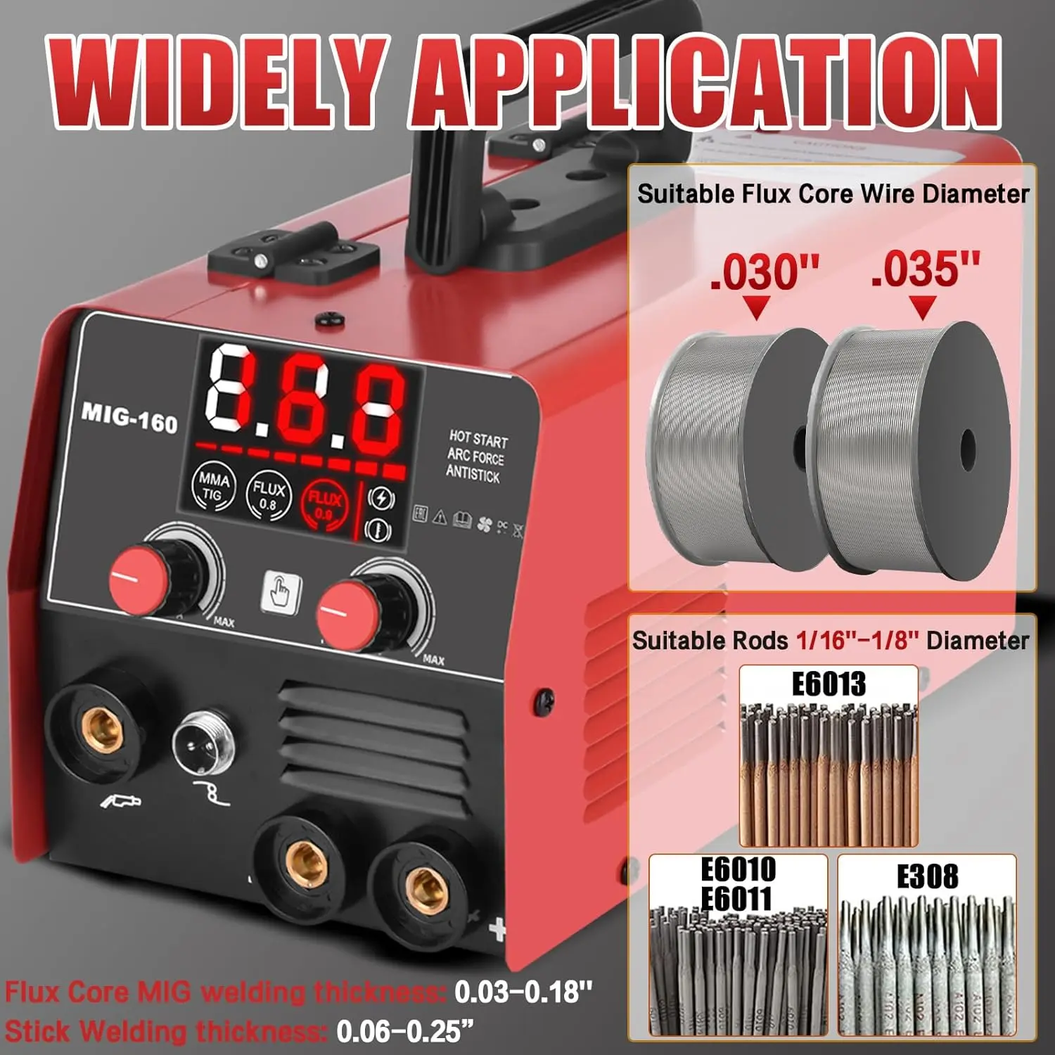 ·【3 IN 1 Multi-Function Welder】Tired of constantly switching equipment for different welding tasks? Our welding machine combines 3 IN 1: flux core welder, Lift TIG welder, and stick welder! Say goodbye to cluttered equipment, the welder machine can handle all your metal welding challenges, saving you time and money. Whether you're a home repair enthusiast, a beginner, or a DIY enthusiast, the 3-in-1 MIG welder is your go-to tool for any project! (Note: The Lift TIG torch is not included.) We recommend watching our installation tutorial video first to quickly get started with the fun of welding.